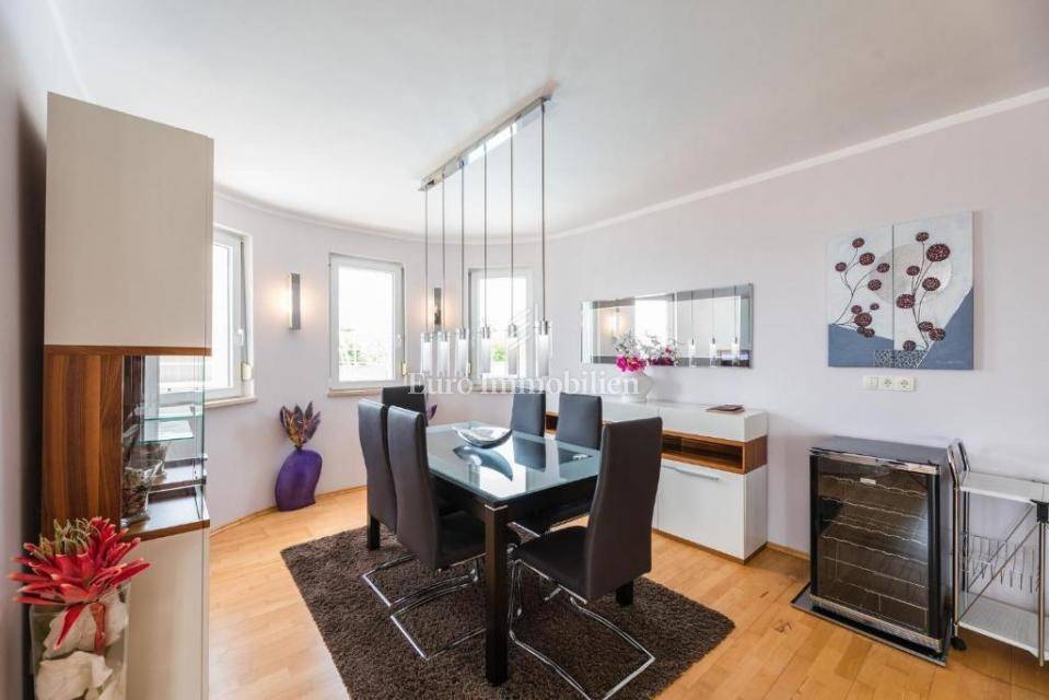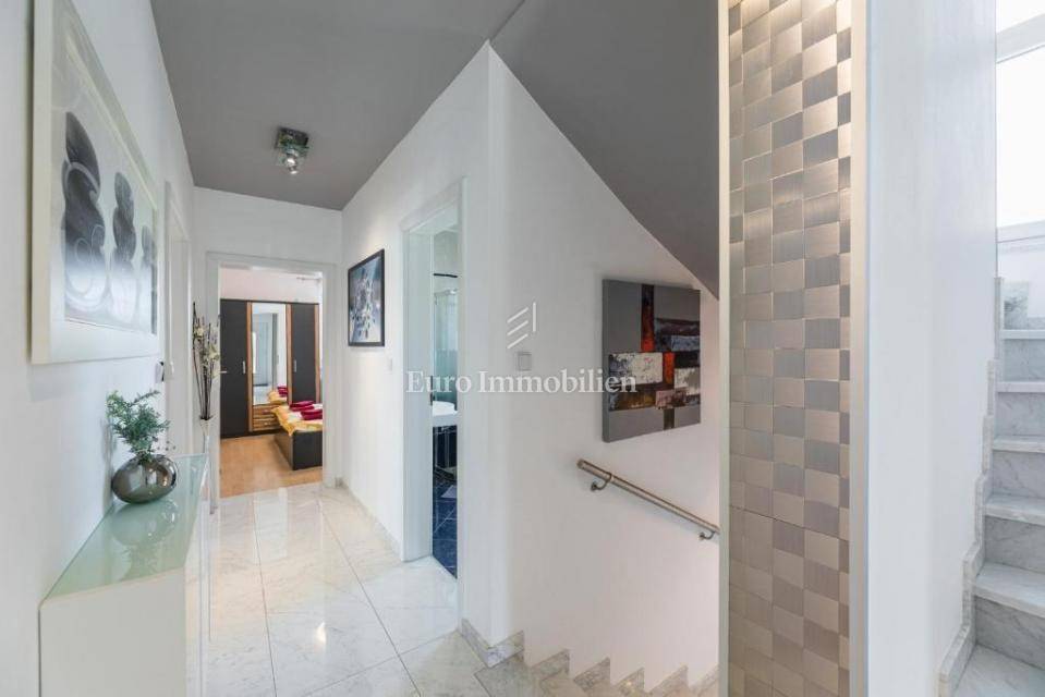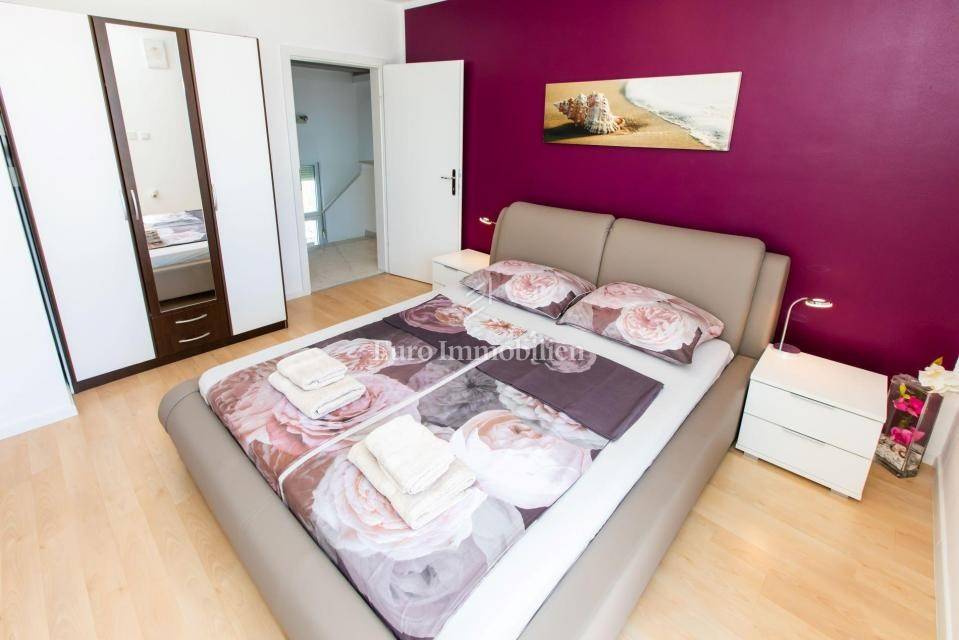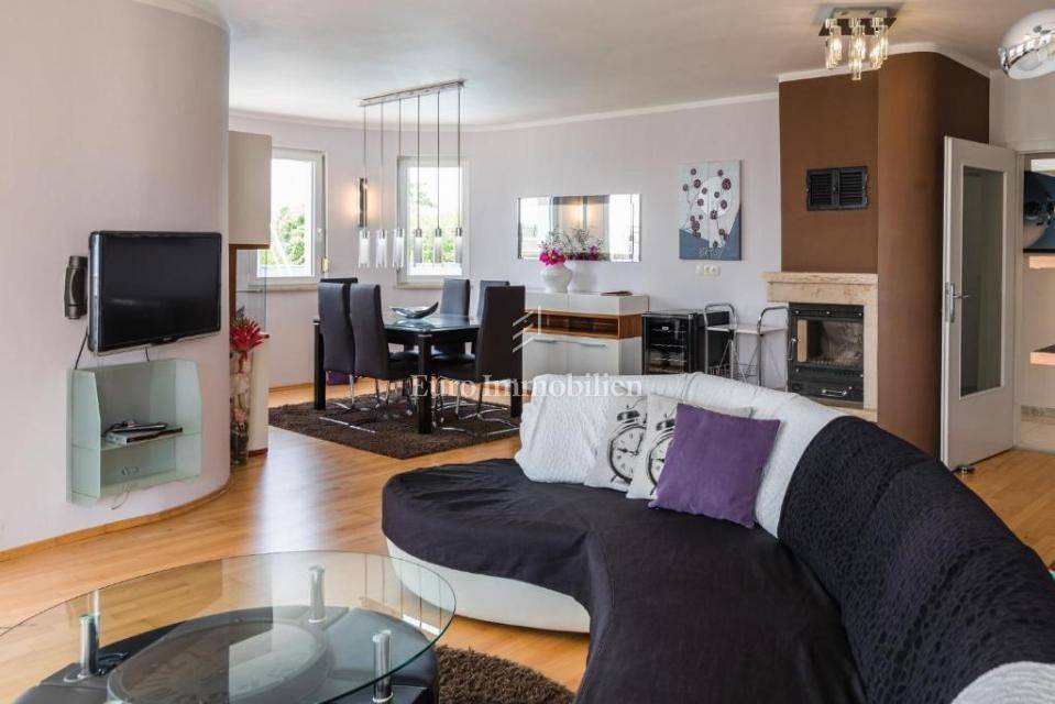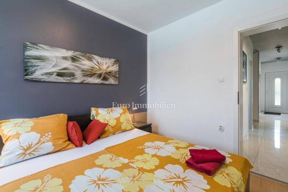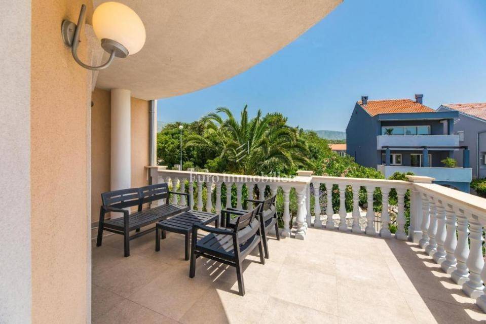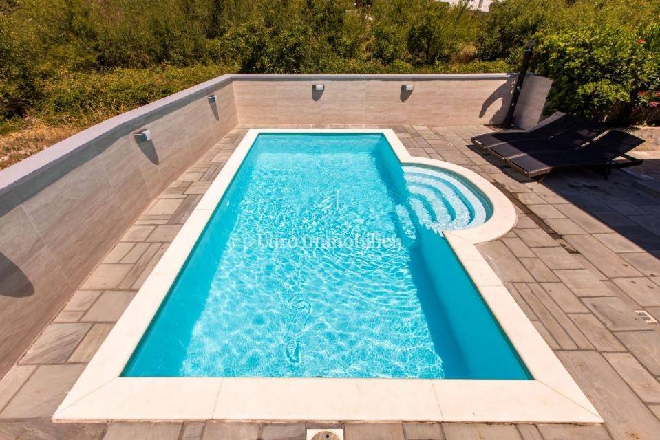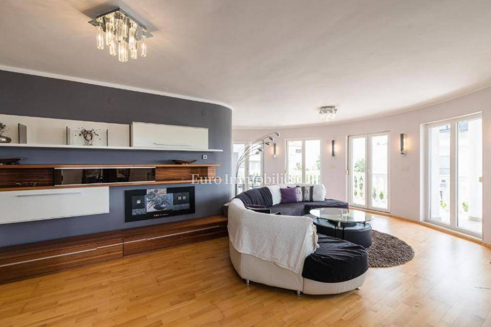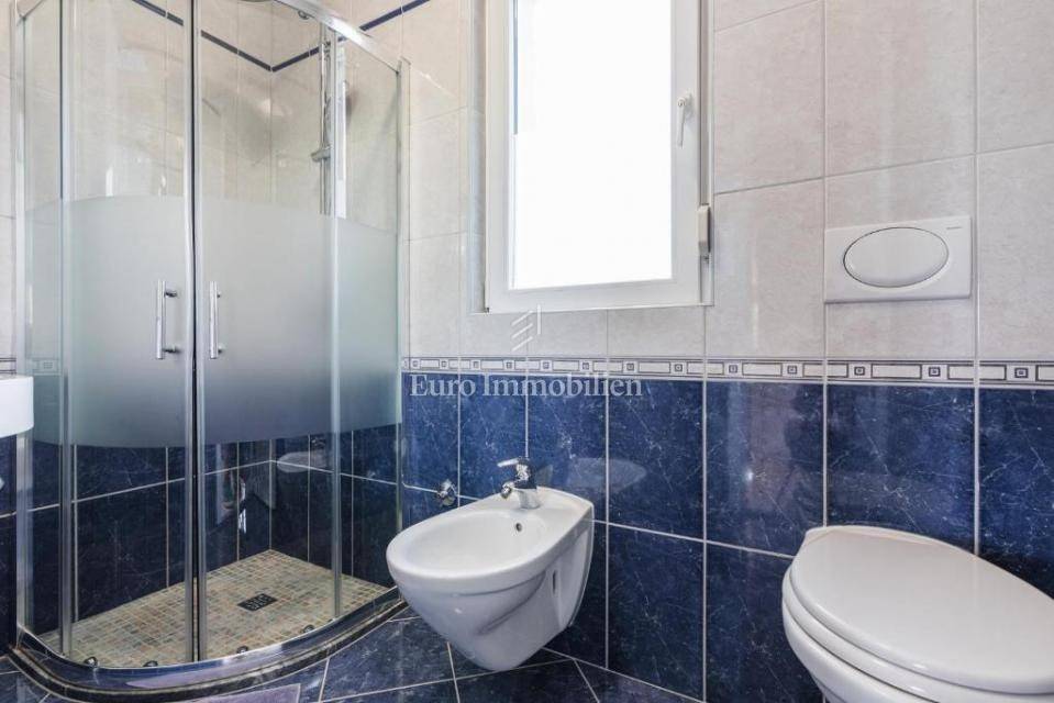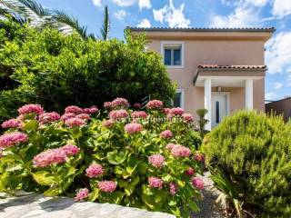 A villa with a swimming pool for sale, located in a quiet part of the town of Crikvenica. It consists of a basement, ground floor and first floor. In the basement there is a large three-room apartment with two bathrooms. Next to the apartment there is also a room for hanging out, a technical room, and two storage rooms. On the ground floor there is a living room with a fireplace, full of light, a kitchen with a dining room, a pantry, a bedroom, a bathroom and a large outdoor terrace. An internal staircase leads to the first floor where there are three bedrooms, two bathrooms, one of which is a master bedroom with its own bathroom and dressing room. All rooms open onto a terrace with a beautiful view of the sea. On a beautifully landscaped garden full of greenery, there is a terrace, swimming pool, barbecue, facilities for socializing and enjoying. There are two garages, one of 25 m2 and the other of 35 m2.