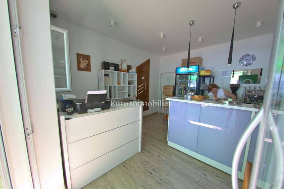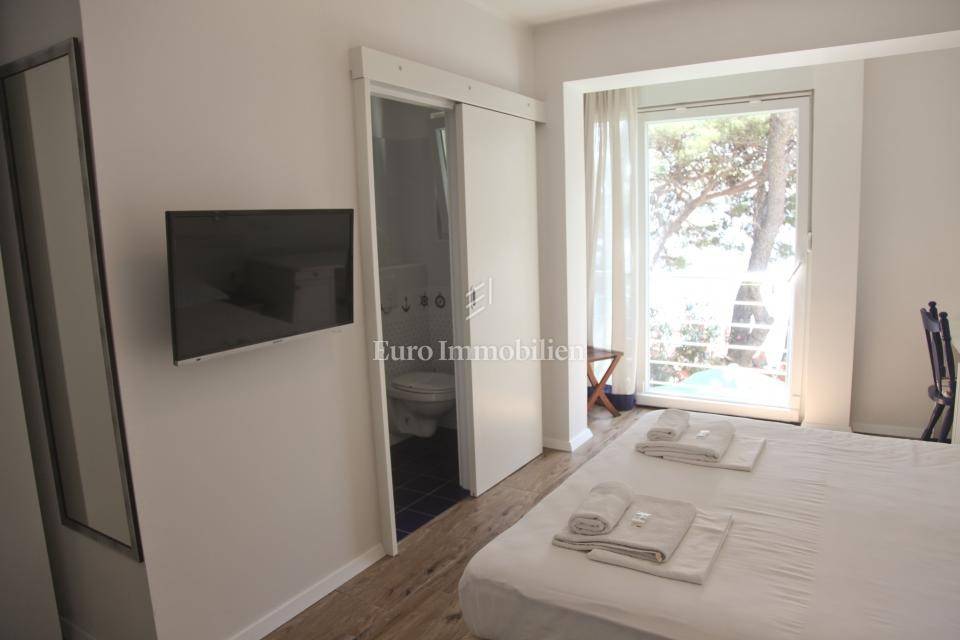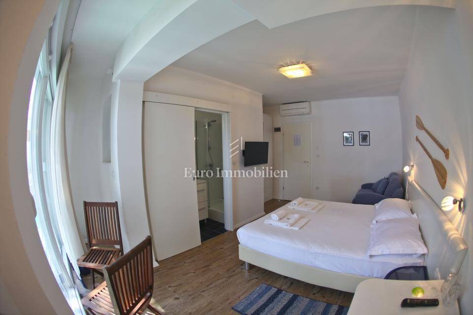 A family hotel located in the first row to the sea on the Makarska Riviera, in a quiet tourist town near Makarska. The hotel covers an area of 533 m² over four floors, with a capacity for 34 people. On the ground floor there is a restaurant, bar, kitchen, reception and a spacious terrace with 60 seats by the beach. On the first and second floors there are 10 rooms, while the third floor offers two luxury apartments with private terraces and saunas. The facility was completely renovated in 2014, equipped with modern amenities and air conditioning, and from every corner there is a spectacular view of the sea. Parking is provided for guests. Ownership 1/1, use permit.