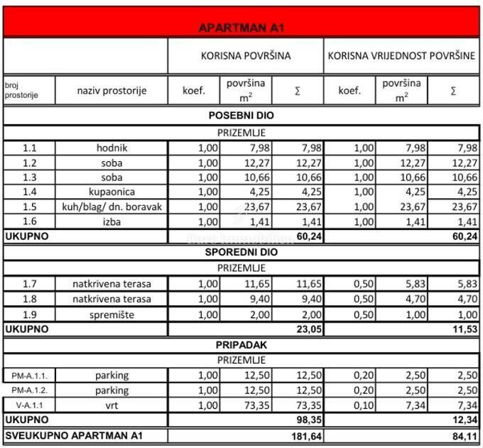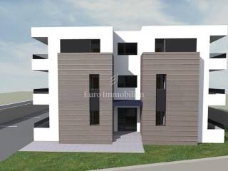 An apartment of 84.11 m2 is for sale on the ground floor of an attractive new building in Novalja. It consists of an entrance hall, 2 bedrooms, a living room with a kitchen and a dining area, a bathroom, a storage room, 2 covered terraces and a large garden of 73.35 m2. It also has 2 parking spaces. The apartment will be air-conditioned and equipped with the highest quality materials. Expected completion of works in early 2026.