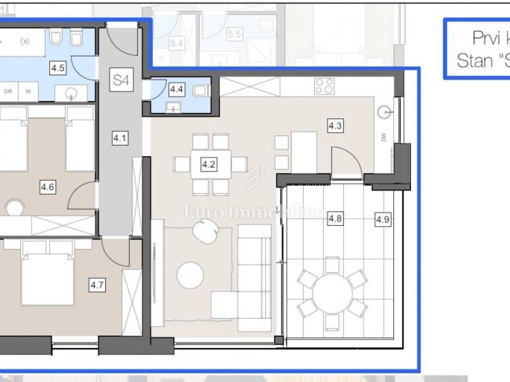 A two-bedroom apartment (S4-2) for sale on the first floor of an urban villa in the center of Labin.