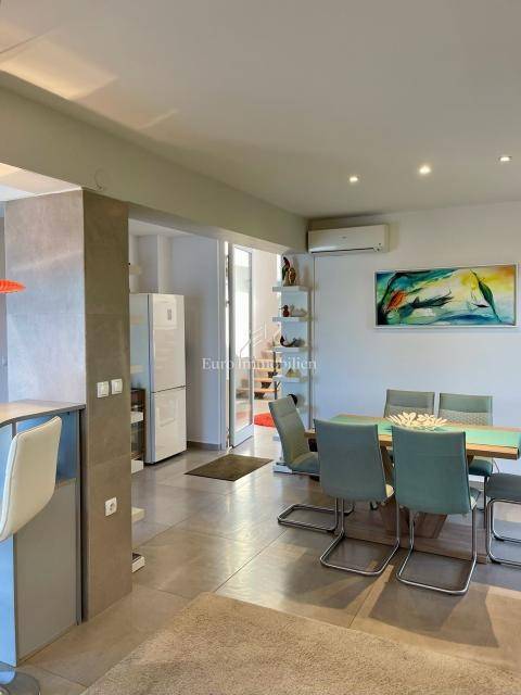 In a quiet location in the Zadar district of Novi Bokanjac, an attractive and modernly furnished detached house with a total living area of 186 m² on a plot of 263 m² is for sale. The house consists of four rooms, including three bedrooms, two bathrooms and an additional guest toilet. It was built in 2010 and completely renovated in 2024. Spread over two floors, it is fully furnished and equipped, ready to move in.