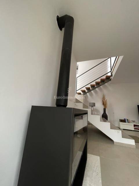 The property offers exceptional comfort and functionality – two roof terraces and two balconies, a living room with fireplace, four air conditioners, security doors, a garden with a shed, barbecue and terrace heater. Thanks to the layout of the plot, there is also space for a camper or boat trailer, and a total of five parking spaces are available. The property has an A+ energy certificate.