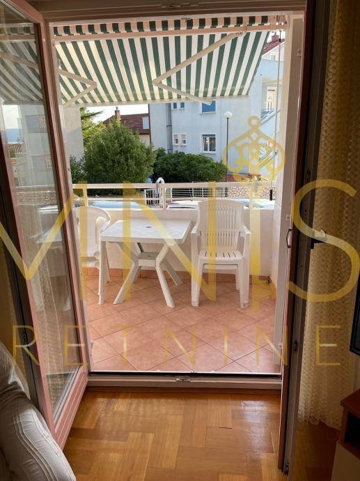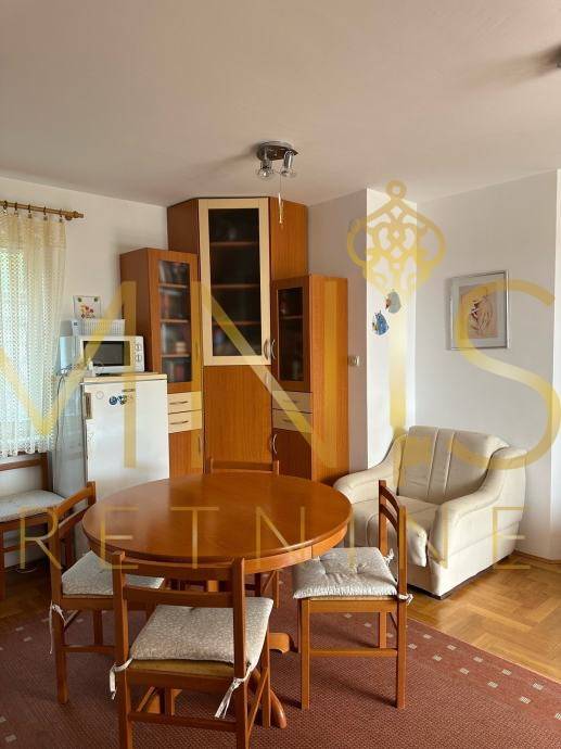 Stan se nalazi na mirnoj poziciji, a njegova jugozapadna orijentacija osigurava obilje prirodnog svjetla tijekom cijelog dana. S prostrane lođe pruža se lijep pogled na more, što dodatno naglašava vrijednost i privlačnost ovog prostora.