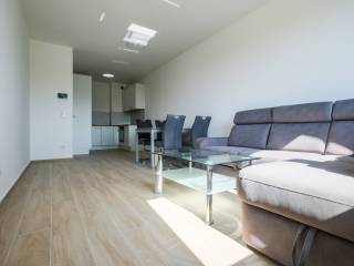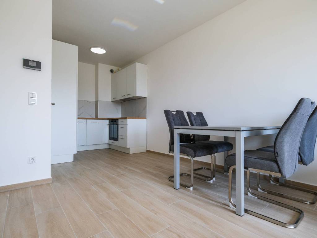 Iznajmljuje se potpuno nov, moderno uređen i kompletno opremljen dvosoban stan ukupne površine 54,76 m (48 m stambeno + garažno parkirno mjesto 13,52 m, ko koef.=6,76 m), smješten u novijem stambenom kompleksu s liftom u Blatu, jednom od brzorastućih dijelova Novog Zagreba.