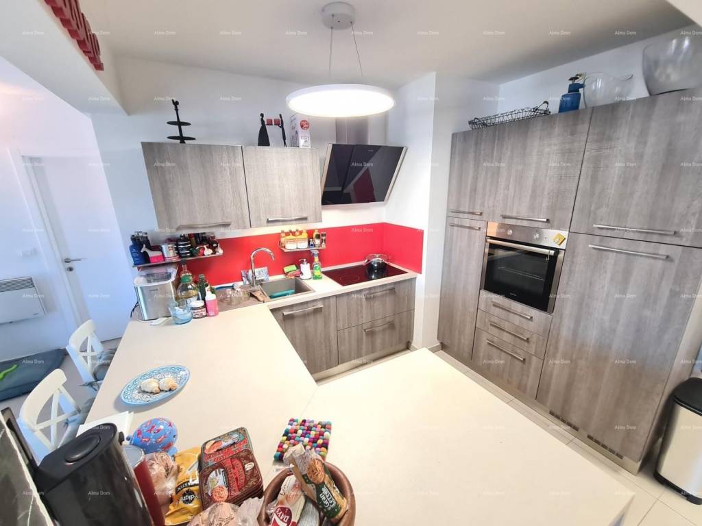 EXCLUSIVE OFFER! We offer an apartment in Volma, with a view of the sea! The apartment consists of a hallway, a toilet, two smaller bedrooms that share a bathroom, a larger bedroom with its own bathroom, a kitchen with a spacious dining room and a living room. From the living room there is an exit to a large terrace. Every room in the apartment has a view of the sea. The apartment is furnished with Italian furniture and is being sold as such. Air-conditioned. Mosquito nets on all openings. Parking in the garage and storage in the garage. Great location!