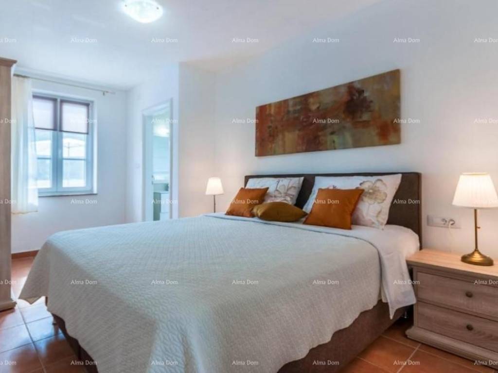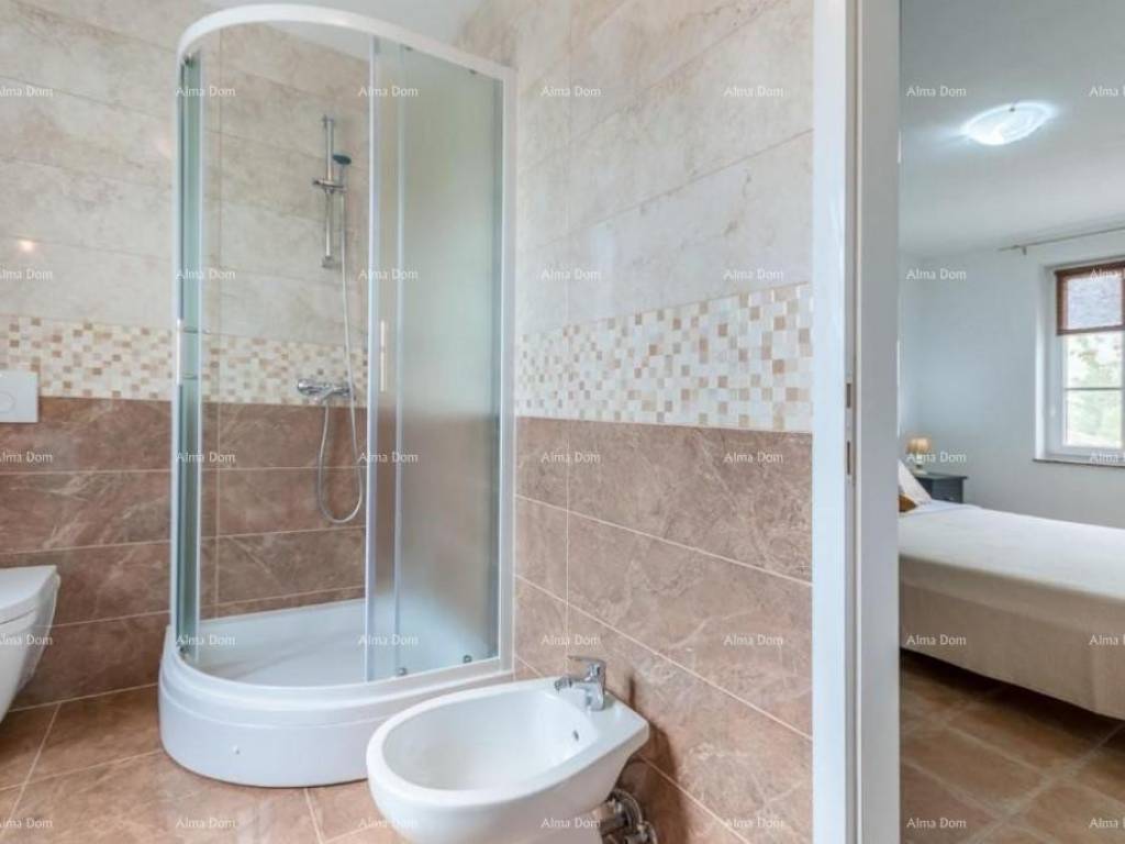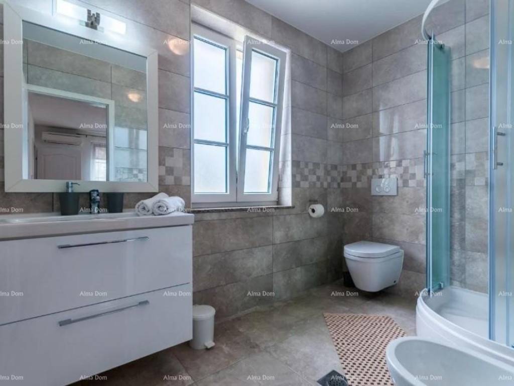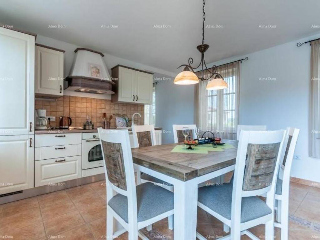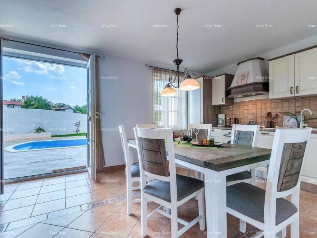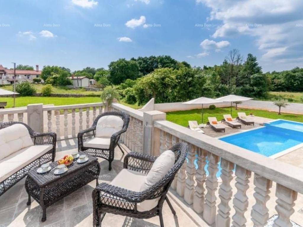 Villa with swimming pool for sale, near Barban. It is located in a quiet and natural location. This beautiful villa of 130 m2 consists of 4 bedrooms and 4 bathrooms, a living room, a kitchen and a spacious terrace. The villa offers accommodation with a balcony, garden and outdoor pool, access to the terrace and private parking. The villa is located only 31 km from the Pula Arena.