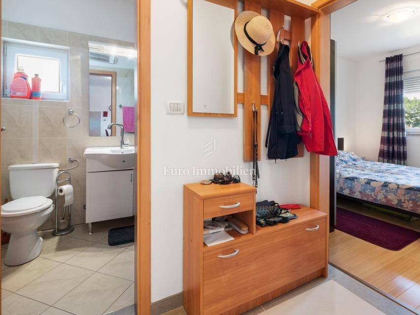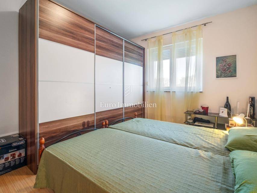 For sale is a two-bedroom apartment of 57 m², located in a quiet part of Ližnjan, close to Medulin. The apartment is on the first floor of a smaller residential building, fully furnished and ready to move in.