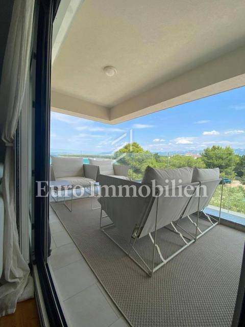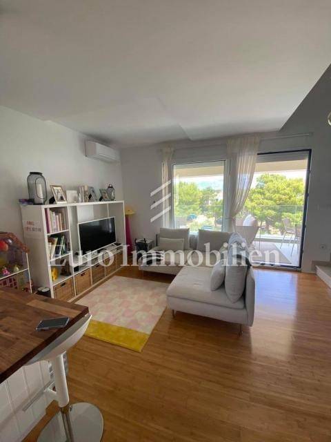 The apartment is located on the second floor of a residential building, just 50m from the sea. It consists of a hallway, a bathroom, a bedroom, a living room with a kitchen and a dining room and a balcony on the second floor and a gallery with 2 bedrooms, a bathroom and an exit to the terrace with sea view. It has one parking space. The apartment is located in a quiet location, only 400m from the center. Excellent property for private use or tourist rental!