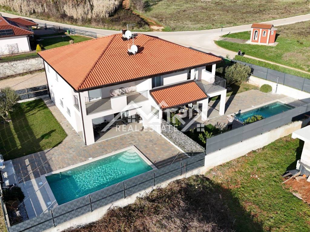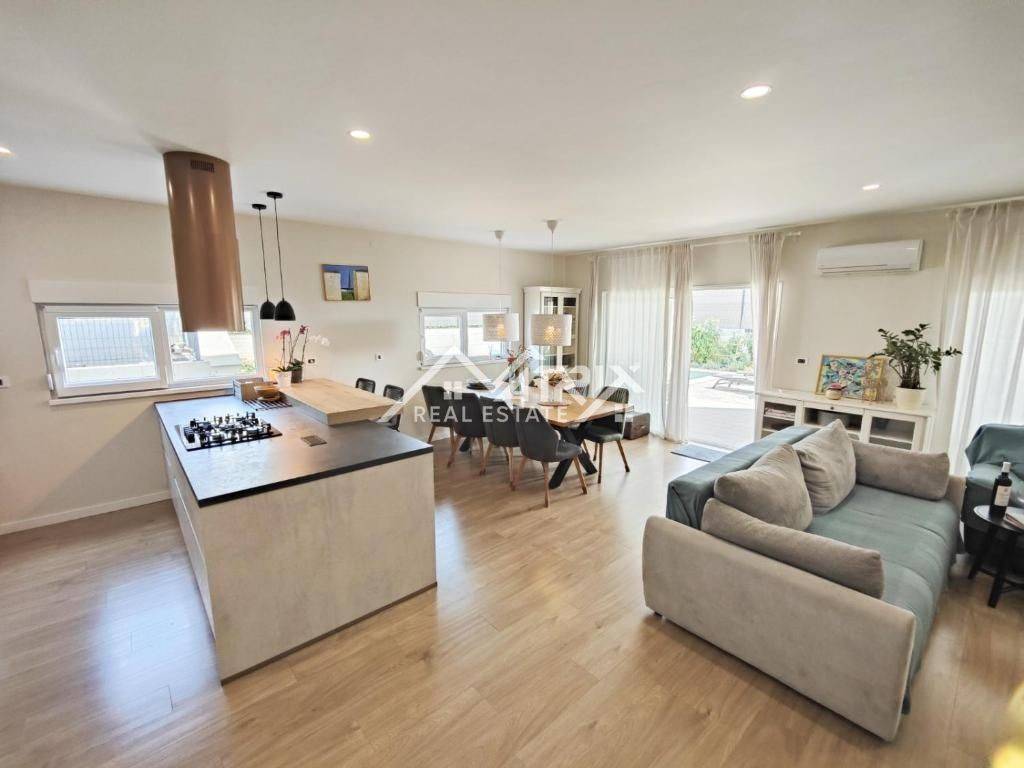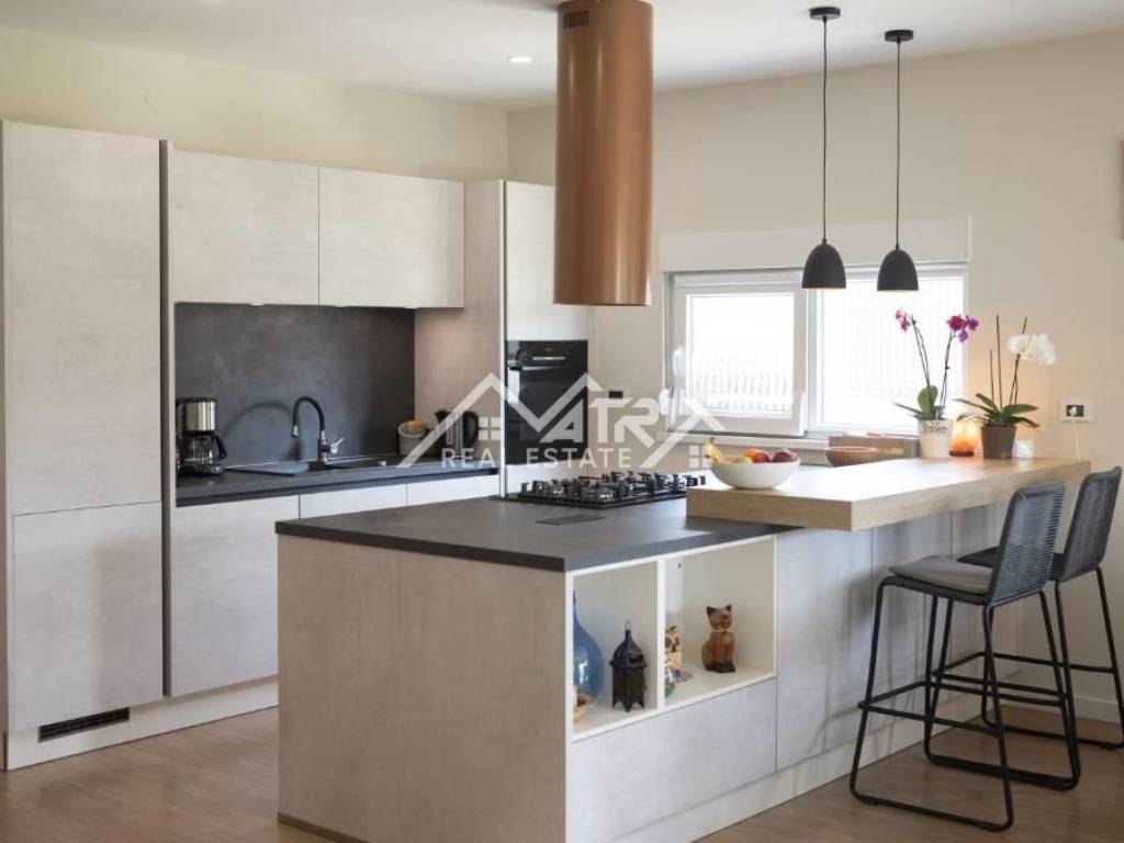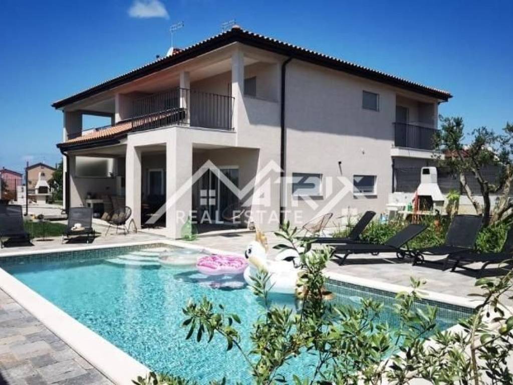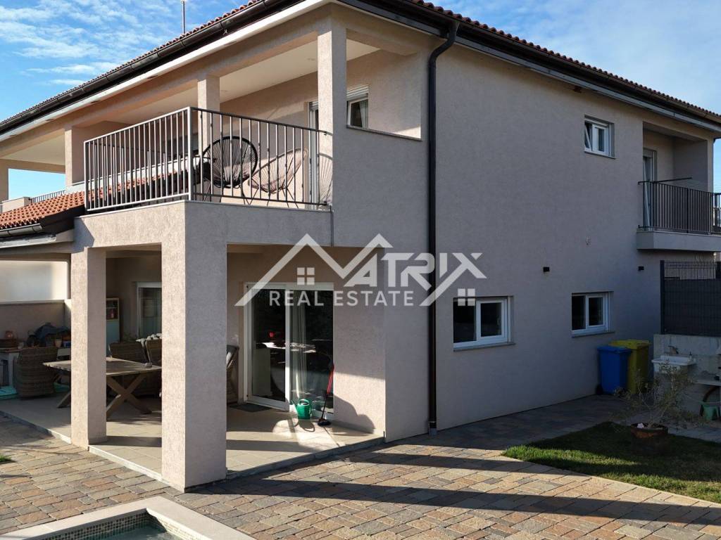 In the quiet residential area of Stancijeta, only 2 km from the center of Novigrad and the sea, a semi-detached house unit built in 2021 is for sale, with a valid occupancy permit. The house is energy-efficient, with a total living area of 180 m², situated on a 480 m² plot. Thanks to its functional layout, landscaped garden and peaceful natural surroundings, the property is ideal for comfortable family living, but also represents an excellent investment opportunity for tourist rental.