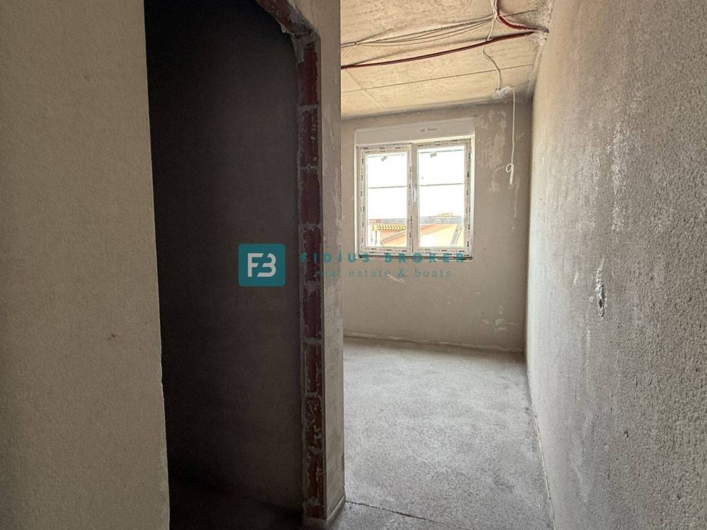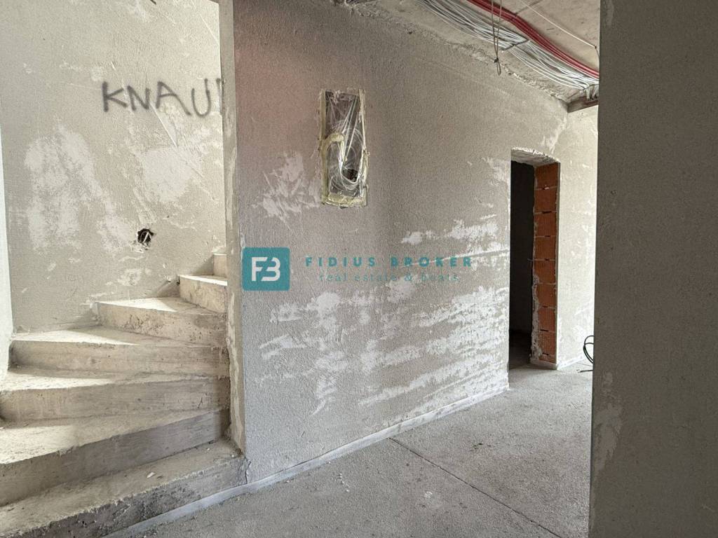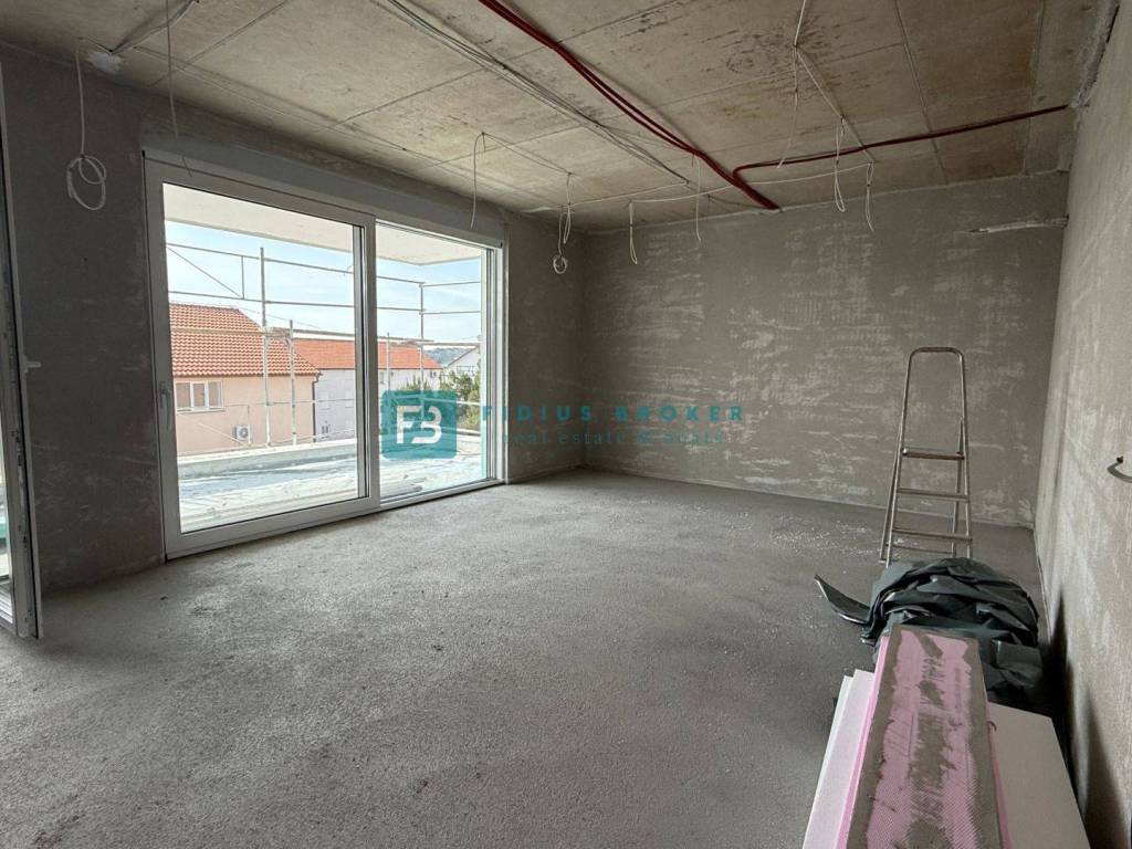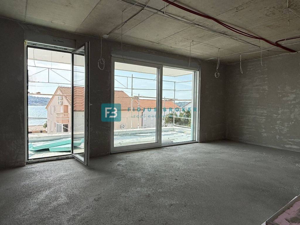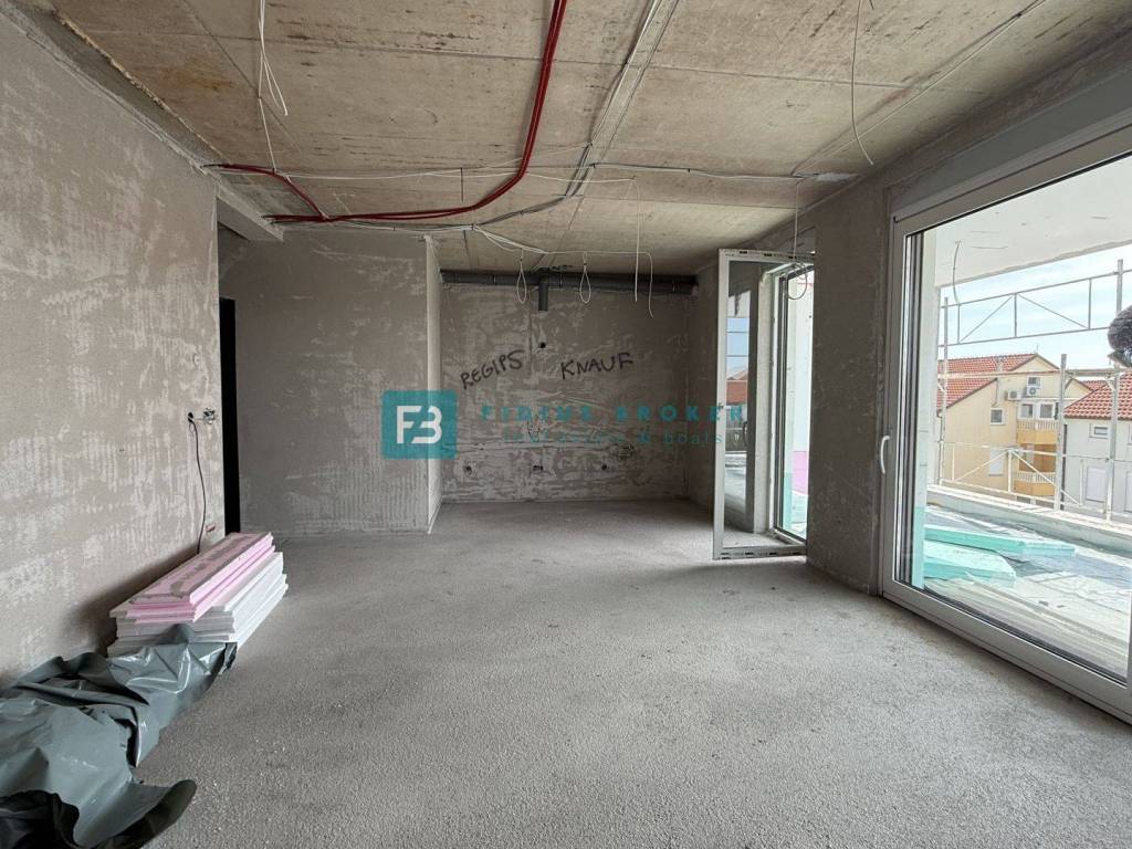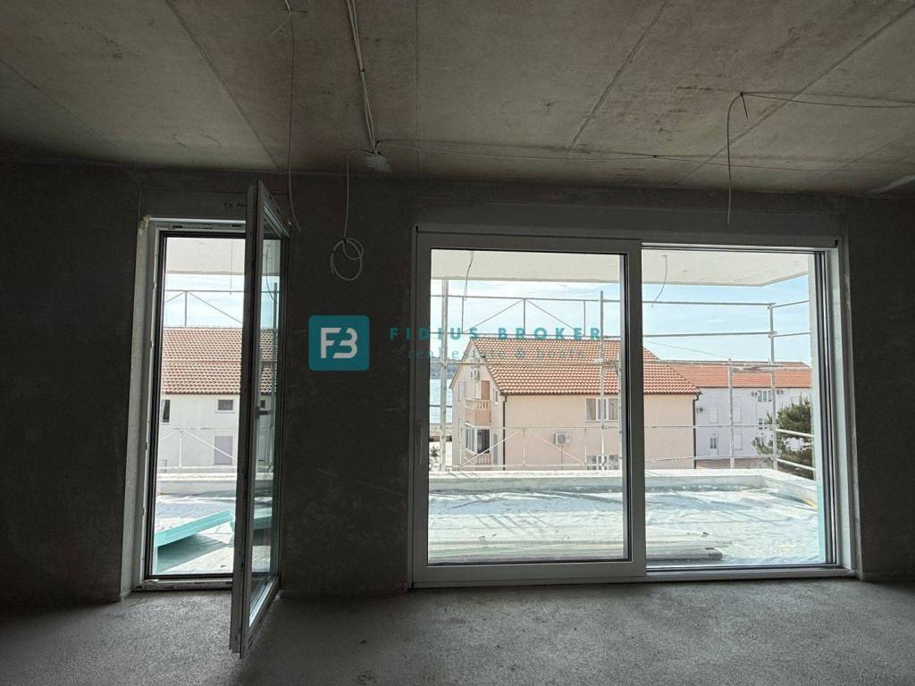 A new residential building project with an interesting design and functional layout with a total of 8 luxury apartments with a view of the sea. It is located in an attractive location, in the immediate vicinity of a beautiful pebble beach. The building has 4 floors: ground floor +1. floor + 2nd floor + roof terrace. The building is being built with quality materials according to the latest construction standards and will be equipped with: polystyrene facade, external ALU joinery with six chambers and three-layer glass, the outside of the profile in bronze and the inside of the profile in white, electrically operated roller shutters, mosquito nets, anti-burglary and fire-resistant entrance doors from a renowned manufacturer with a certificate, an elevator, interior doors with hidden hinges and magnetic locks, door frames and moldings made of solid wood, terrace railings on the terraces made of glass Lamistal 2x1 cm, the walls and ceilings of the apartment are plastered and painted in white, internal Plano stone sills are 3 cm thick, polished with profiled edges, extra-class tiles in all other interior spaces and terraces, bathrooms tiled with ceramic tiles up to the ceiling, underfloor heating, air conditioning in the living room with a 5.0 kW inverter and in the rooms with a 2.5 kW inverter, high-quality sanitary equipment of the quality class, modular switches and sockets from the manufacturer TEM in white, lighting fixtures in the bathrooms and on the terraces ceiling lights, and the other spaces socket with a light bulb, terrestrial and satellite antenna with connections in the living room and bedrooms. The apartments on the ground floor have an appropriate part of the garden, and the apartments on the 1st and 2nd floors have a beautiful view of the sea. The building will have an elevator. Planned completion of works and move-in - autumn 2026.