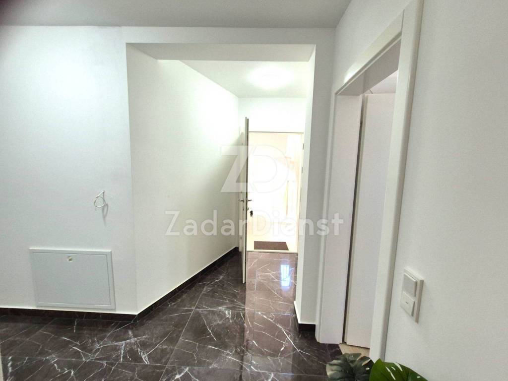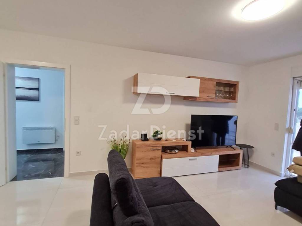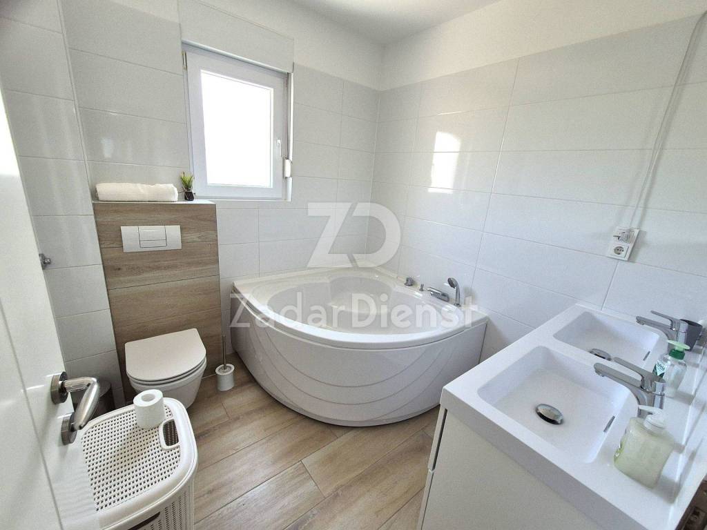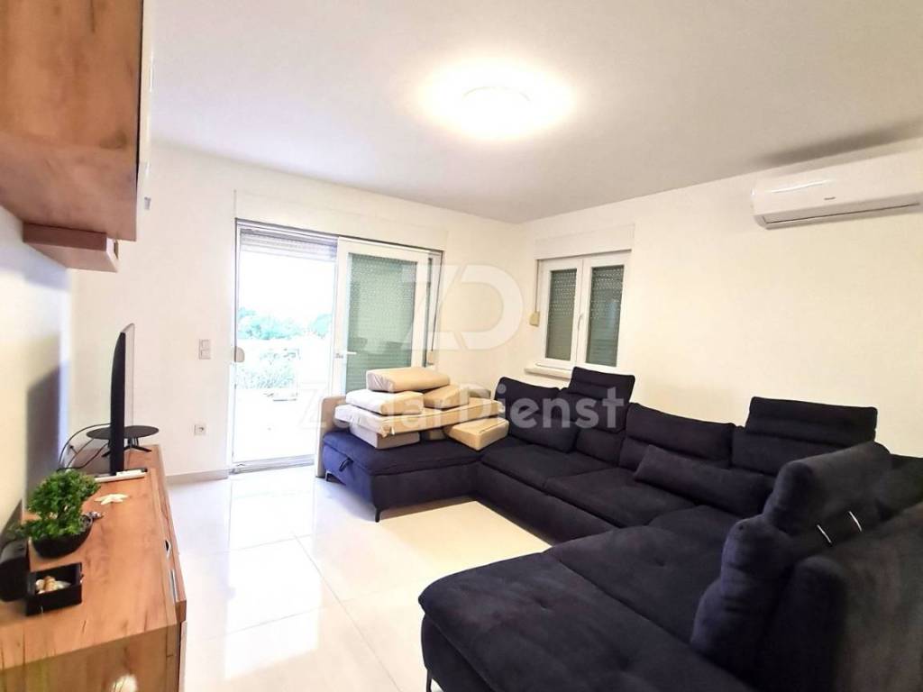 This beautiful and fully furnished 120 m2 apartment on the first floor in Sukošan is for sale. It consists of a hallway, spacious living room, kitchen and dining room, bathroom, separate toilet and a beautiful open and spacious terrace.