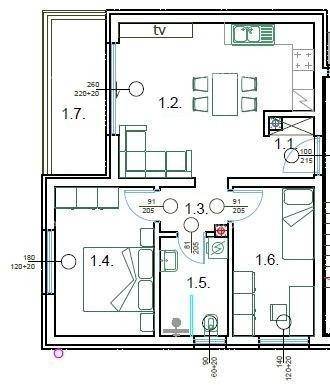 The price of the apartments includes: Underfloor gas central heating with thermostats PVC joinery with blinds and mosquito nets Interior room doors Anti-burglary and fireproof entrance doors Video intercom Air conditioning unit (Daikin 6 kW) in the living room