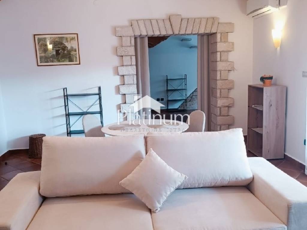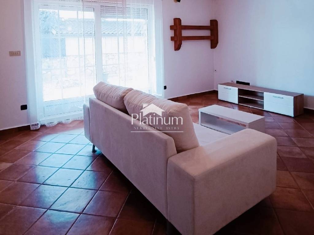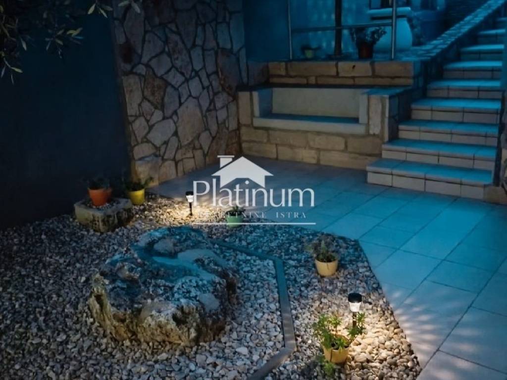 Stan se sastoji od dvije spavaće sobe, prostranog dnevnog boravka koji je povezan s kuhinjom i blagovaonicom, dvije kupaonice, zasebnog toaleta te hodnika. Poseban ugođaj prostoru daje zidani kamin u obliku kažuna, koji prostoru pruža autentičan mediteranski karakter i dodatnu toplinu tijekom zimskih mjeseci. Uz stan dolazi i lijepo uređena okućnica površine 161 m, koja pruža dovoljno prostora za odmor, druženje i boravak na otvorenom, a dodatnu vrijednost daje i velika terasa od 20 m. Na okućnici se nalazi mali maslinik koji doprinosi mediteranskom ugođaju, kao i manja radionica površine 14 m pogodna za razne namjene. Osigurano je i natkriveno parkirno mjesto.