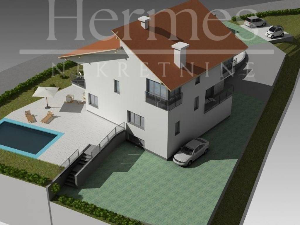 La surface du terrain est d’environ 1300 m2. Le terrain a été préparé pour la construction avec des terrasses déjà aménagées, de sorte que le jardin, bien que sur une légère pente, est conçu pour être utilisé au maximum avec de beaux aménagements nécessaires pour toute la famille ; barbecue, piscine, jardin, etc. Un grand parking pour plusieurs voitures est prévu devant et autour de la maison.
