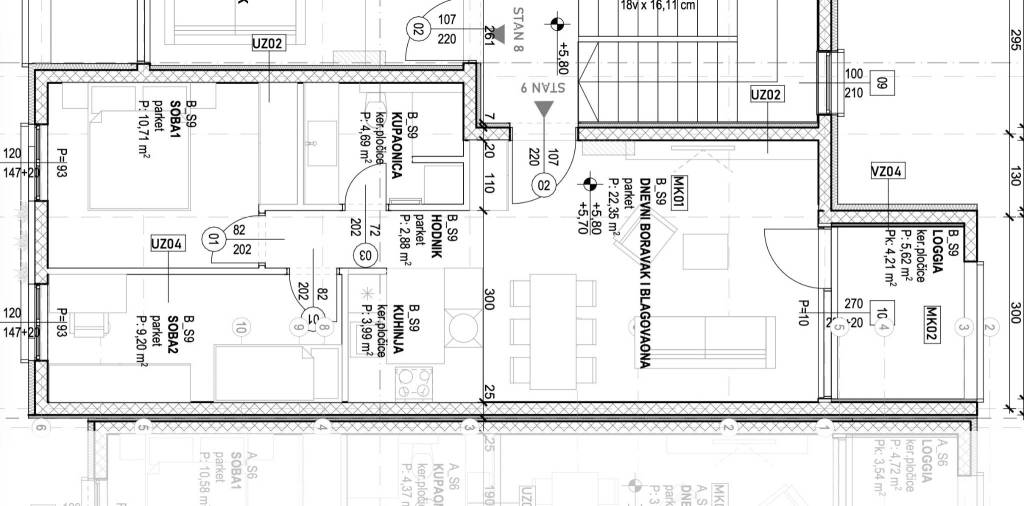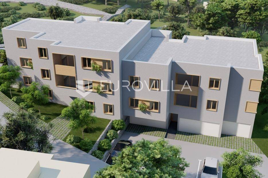 Otok Čiovo- Slatine pored Trogira, komforan dvosoban stan od 59,44 m2 smješten 2. katu zgrade u novogradnji s pogledom na more i pripadajućim vanjskim parkirnim mjestom.Stan se sastoji od: komfornog dnevnoga boravka otvorenog tipa s kuhinjom i blagovaonicom (26,4 m2), dvije spavaće sobe, kupaonice te lođe 5,62 m2 na istoku povezane s dnevnim boravkom i krasnim pogledom na more.Zatvorena stambena površina 53,82 m2, lođa od 5,62 m2 naslonjena na dnevnoga boravka.Uz stan jedno pripadajuće parkirno mjesto neto korisna površina je 60,64 m2.Postoji mogućnost kupnje dodatnog parking mjesta.Orijentacija stana je istok-zapadPredviđeni završetak radova je 12/2026.g.Čiovo je otok s kopnom spojen s dva mosta, a nalazi u blizini Trogira i zračne luke Split.Kvalitetna gradnja, konstrukcija od armiranog beton, pregradni zidovi kao i stropovi knauf s akustičnom vunom uz izvrsnu toplinsku izolaciju termo fasada, PVC zatvori, ravne podizno klizne stijenke, podovi s keramičke pločice i parket, podno grijanje u kupaonici, kompletno sanitarijama opremljena kupaonica.Za sve dodatne informacije stojim vam na raspolaganju.... Više na eurovilla.hr, ID: 740050