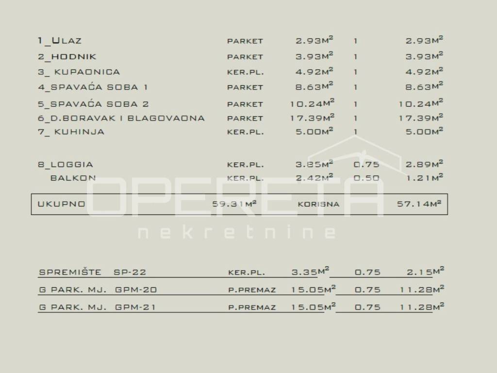Stan: 59,31 m2 bruto (57,14 m2 neto)