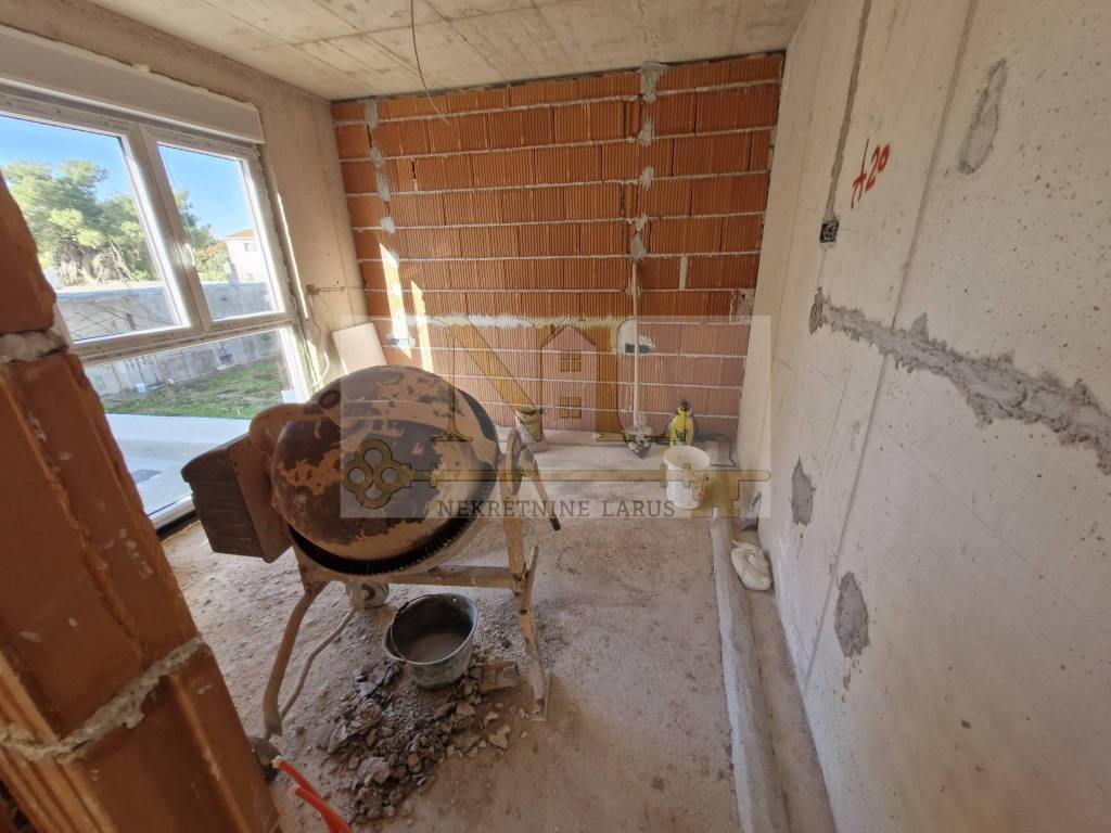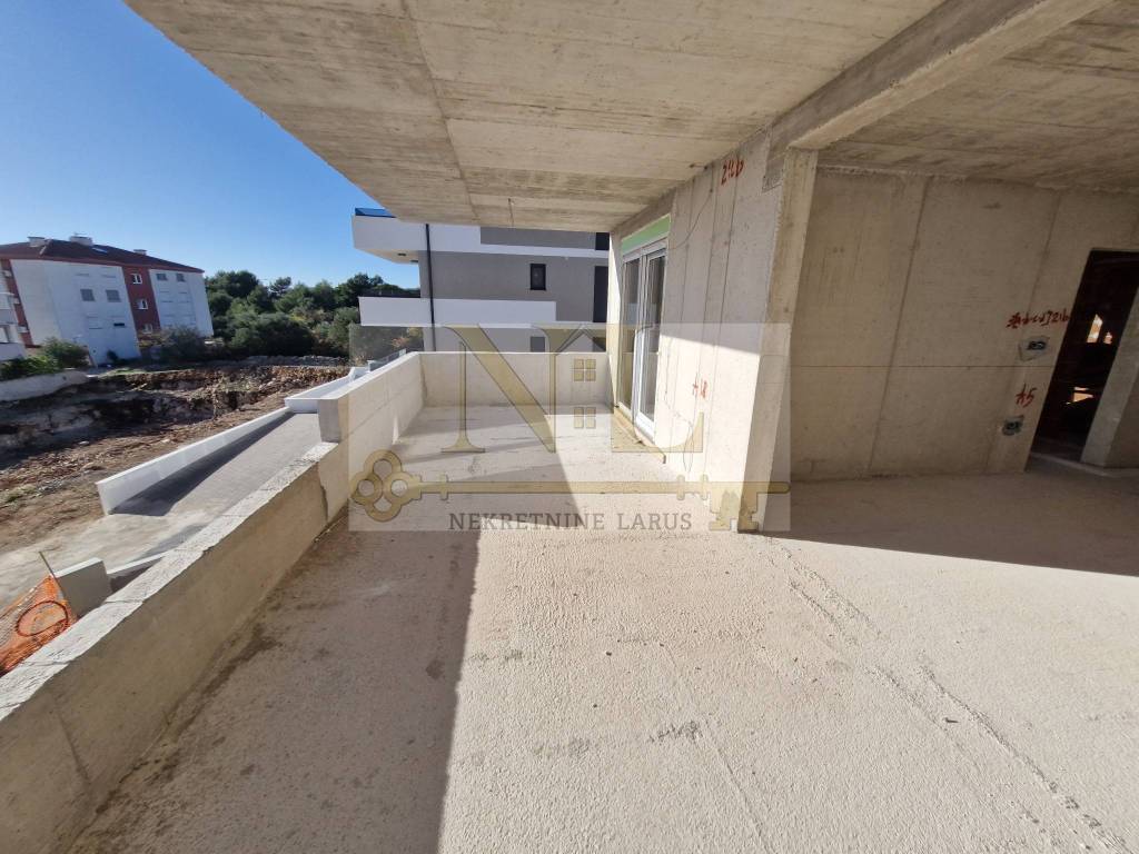 We are selling a three-room apartment S5 on the second floor of a new modern building, Okrug Gornji, island Čiovo. The building is located in a central location in Okrug Gornji with excellent access and a beautiful view of the sea, and all apartments have spacious south-facing balconies. The building is located 500 meters from the sea and the beach. The building has 8 apartments and 13 outdoor parking spaces, and has an elevator and a large communal pool. Apartment S5 is located on the second floor of the building and consists of three bedrooms, two bathrooms, a storage room, a living room with a kitchen and a large terrace with a view of the sea. The apartment has two outdoor parking spaces. Surfaces: Interior area of the apartment: 83.4 m2 Terrace: 24 m2 Total floor area: 107.4 m2