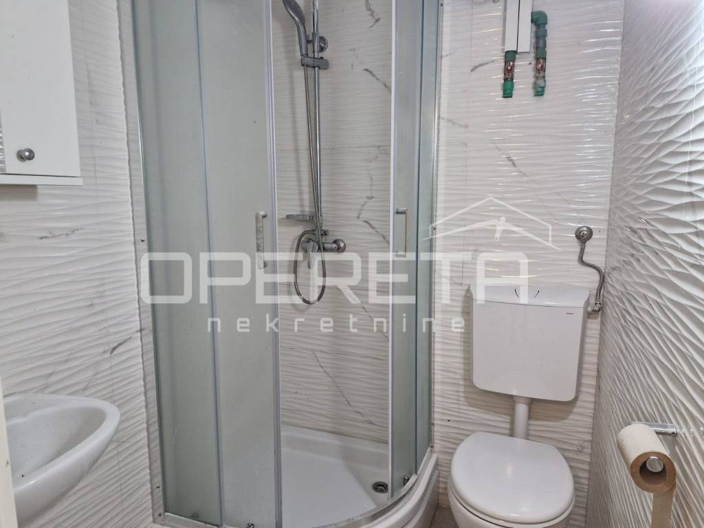 The entrance leads into a spacious open space that connects the living room, kitchen, and dining area into a harmonious and bright whole, illuminated by natural light thanks to good orientation and larger openings. From this part of the apartment, access is provided to the bedroom, which leads out to a terrace located at the back of the house. The terrace offers a cozy corner for relaxation and outdoor living, with a view of the garden and greenery surrounding the property.
