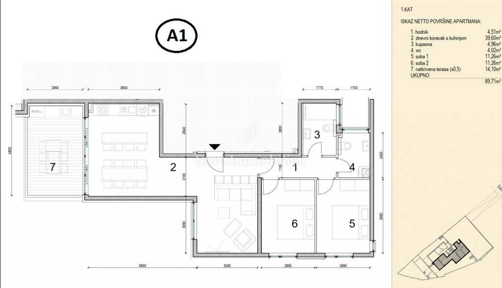 For sale apartment (A1) with a net area of 82.66 m², located on the first floor of an attractive new building in Novalja.