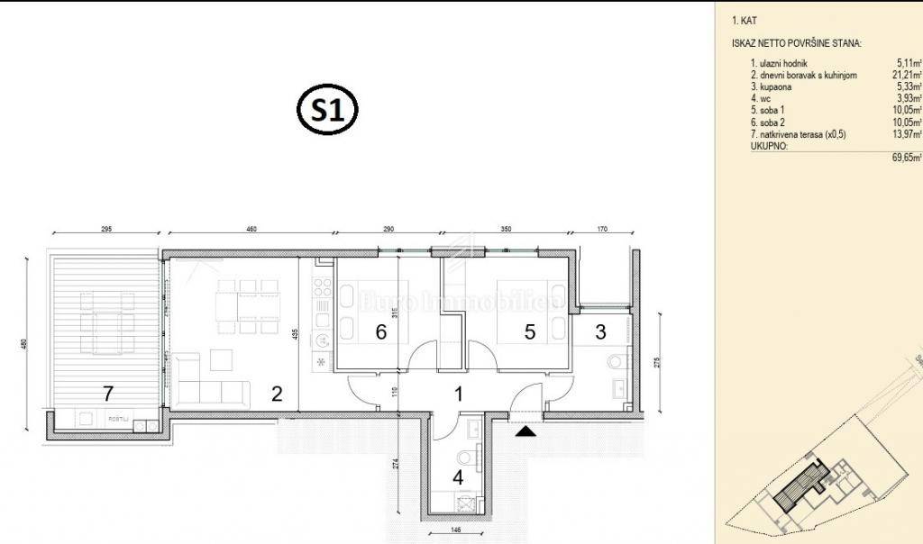 For sale apartment (S1) with a net area of 62.66 m², located on the first floor of an attractive new building in Novalja.
