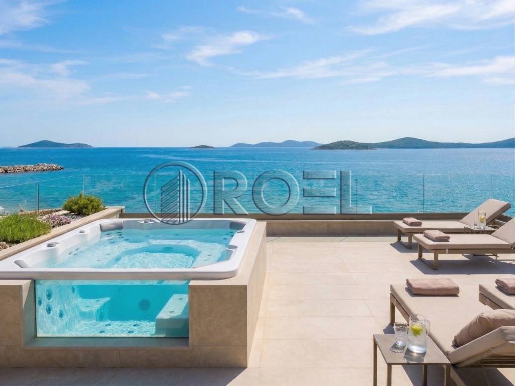 Located in a and attractive part of Mandre, just a few steps from the sea, this modern apartment for sale is situated on the ground floor of a newly built residential building with only two floors and eight units in total.