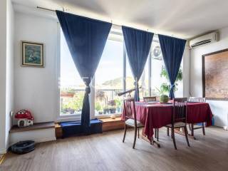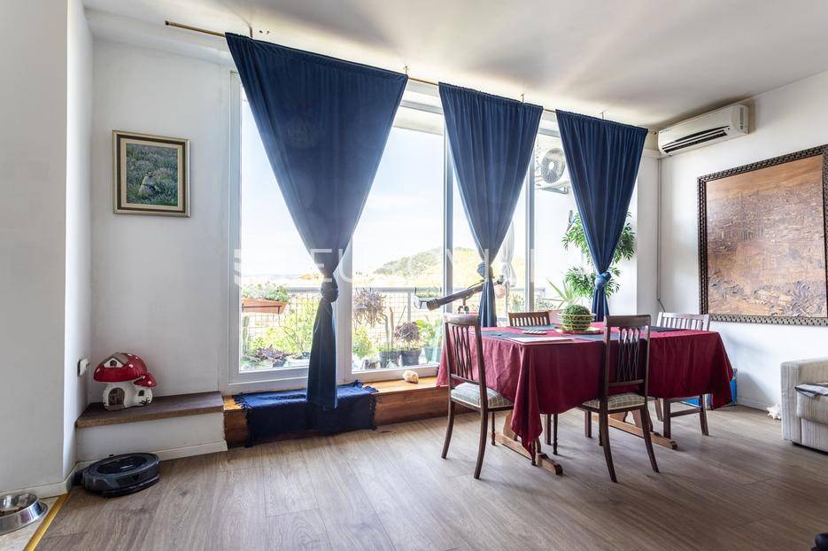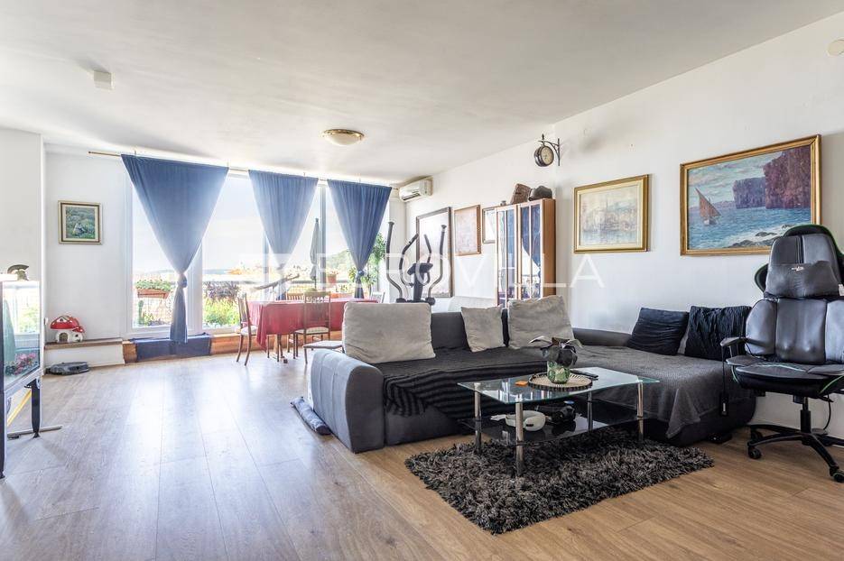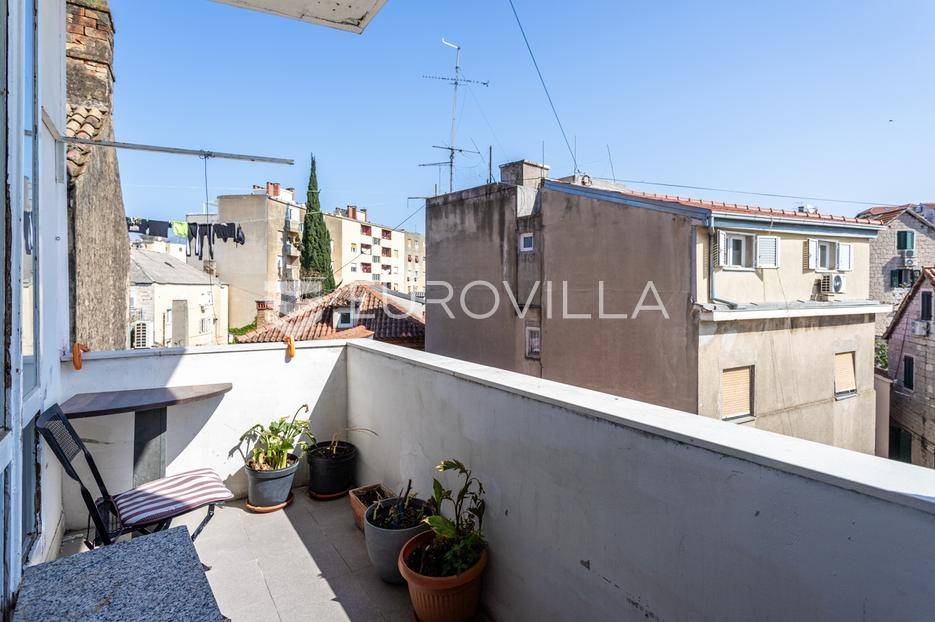 Prodaje se stambena jedinica koja obuhvaća cijelu etažu na trećem katu zgrade s liftom u neposrednoj blizini povijesne jezgre Splita. Nekretnina se u naravi sastoji od dva stana sa zasebnim ulazima, ukupne zatvorene površine 125 m2 te tri balkona površine 20 m2 (ukupno obračunski 135 m2).Veća stambena jedinica (cca 95 m2): Sastoji se od predsoblja, prostranog dnevnog boravka s kuhinjom i izdvojenim gospodarskim dijelom koji ima izlaz na manji balkon. Na jugozapadnoj strani nalazi se velika spavaća soba s ugradbenim ormarom i balkonom. Hodnik vodi do kupaonice na istočnoj strani te druge prostrane spavaće sobe s pripadajućim balkonom i ugradbenim ormarom. Orijentacija: jug-istok-zapad.Manja stambena jedinica (cca 40 m2): Funkcionira kao zaseban stan s vlastitim ulazom (poluprotuprovalna vrata). Sastoji se od ulaznog prostora, ostave, kupaonice s tušem te "open-space" dnevnog boravka s kuhinjom i spavaćim dijelom te balkona.Lokacija: Zgrada se nalazi na pješačkoj udaljenosti od Rive, Dioklecijanove palače, trajektne luke te autobusnog i željezničkog kolodvora. Svi bitni sadržaji nalaze se u neposrednoj blizini. Parking je dostupan na javnim površinama uz naplatu.Stan se prodaje namješten (prema dogovoru). Zbog svoje tlocrtne dispozicije, nekretnina je idealna za kombinaciju stambenog prostora i turističkog najma.Za sve dodatne informacije smo na raspolaganju.... Više na eurovilla.hr, ID: 394382