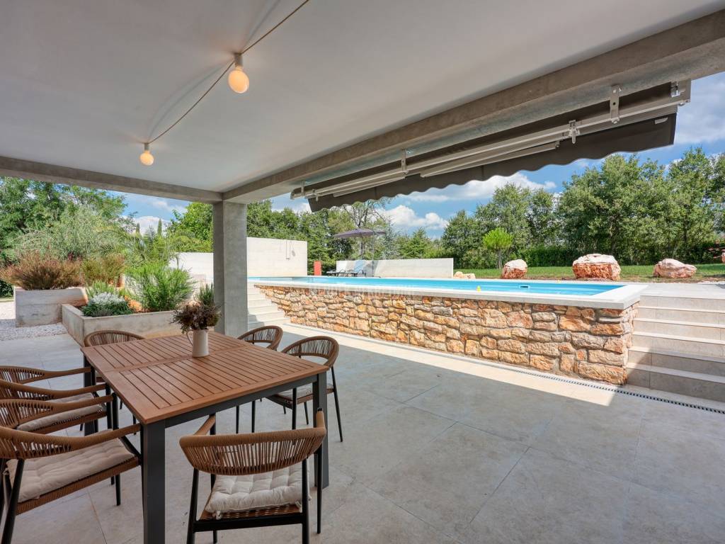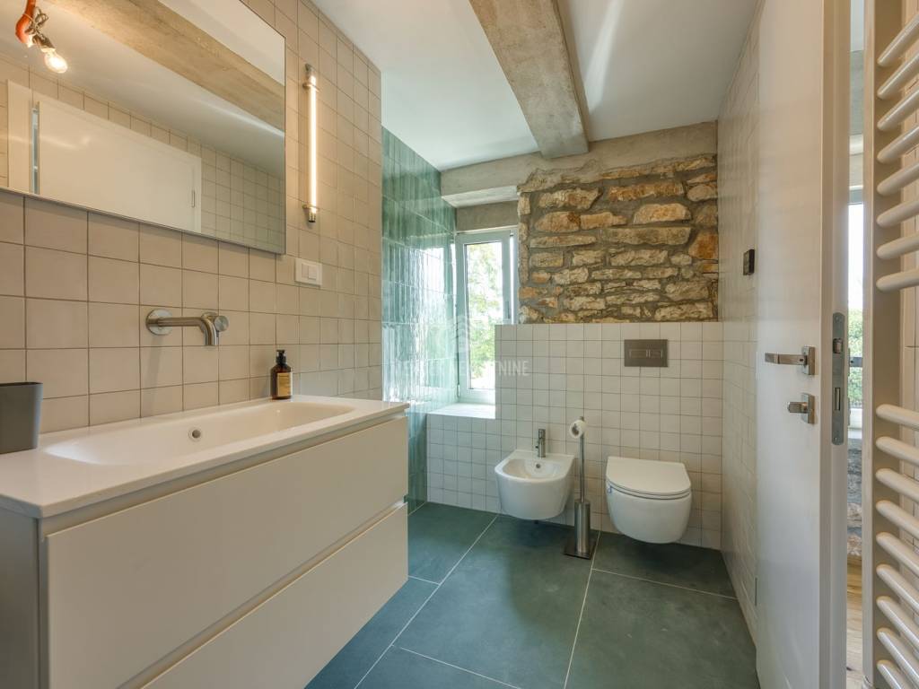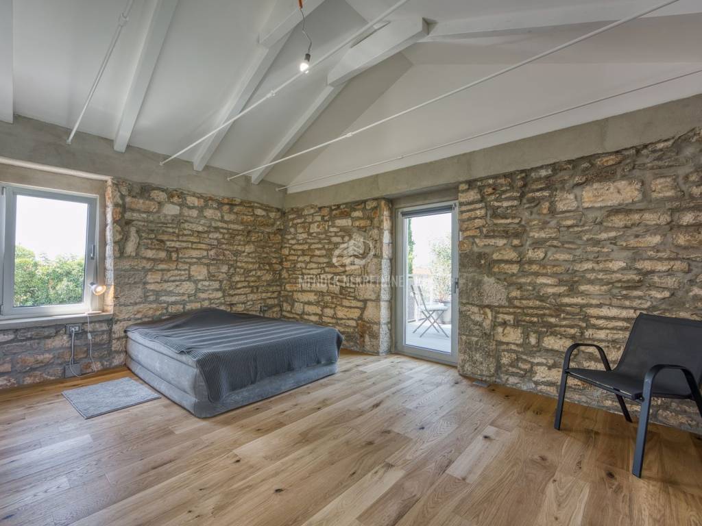 Prodaje se restaurirana kamena vila građena 1912. godine a kompletno renovirana uz zadržavanje originalne starine 2025. godine. Sav komfor u 4 spavaće sobe sa vlastitim kupaonama, prostrani dnevni boravaka s panoramskim pogledom, podno grijanje - struja, grijani bazen, uređena okućnica sa biranom hortikulturom sa sustavom za navodnjavanje. Sve na potpuno izoliranoj parceli od 7 200 m2 sa zelenim vrtom, maslinama i vinogradom.