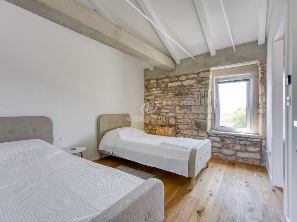 Prodaje se restaurirana kamena vila građena 1912. godine a kompletno renovirana uz zadržavanje originalne starine 2025. godine. Sav komfor u 4 spavaće sobe sa vlastitim kupaonama, prostrani dnevni boravaka s panoramskim pogledom, podno grijanje - struja, grijani bazen, uređena okućnica sa biranom hortikulturom sa sustavom za navodnjavanje. Sve na potpuno izoliranoj parceli od 7 200 m2 sa zelenim vrtom, maslinama i vinogradom.
