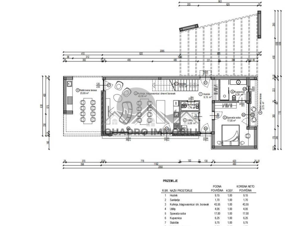 Heating will be provided by underfloor heating throughout the entire surface. In addition to underfloor heating, the house also has a fireplace, air conditioning for heating and cooling. Additional equipment; video surveillance, alarm system with motion activation. The exterior joinery will be made of aluminum, and the interior doors will be made of plywood or solid wood. The garden will be equipped with an irrigation system, and the 40m2 swimming pool will be covered with foil.