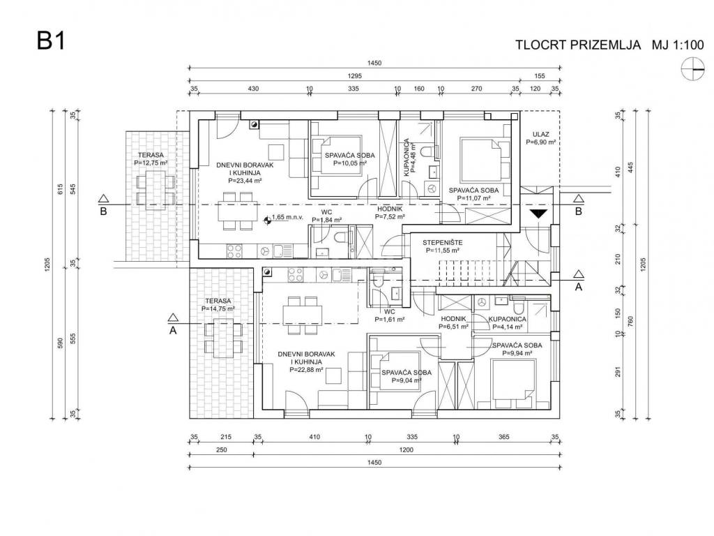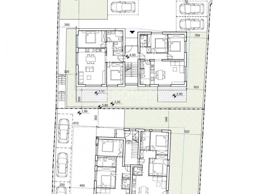The building is part of a project consisting of two modern residential buildings (B1 and B2), positioned one behind the other, with this building located in the second row from the sea. The project is characterized by contemporary architecture, high-quality construction, and a carefully designed layout of apartments. Each building contains a total of six residential units distributed over the ground floor and two upper floors.