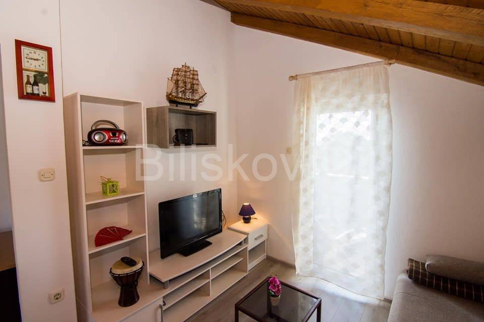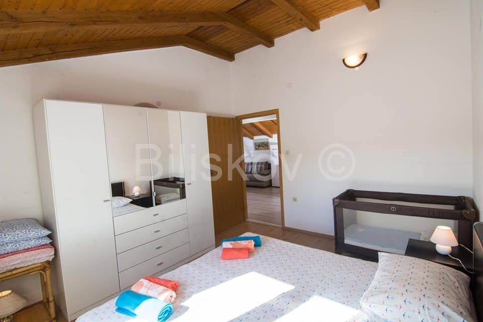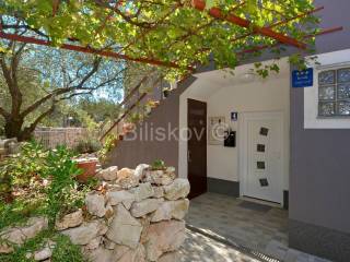 Prodaje se kuća na otoku Drvenik Mali, u uvali Vela Rina, udaljena 20 m od mora i pješčane plaže. Kuća ima dvije etaže ( 2 odvojena stana, svaki površine cca. 65 m2 ) i nalazi se na parceli površine cca. 480 m. Useljiva je i urednog izgleda, bez potrebe za renoviranjem. Nekretnina ima pristup cestom i nalazi se u mirnom dijelu naselja. Pogodna je za boravak tijekom cijele godine ili za korištenje kao vikendica. Pristupne ceste za automobil nema direktno do kuće, na parcelu je moguće ući direktno sa mora.