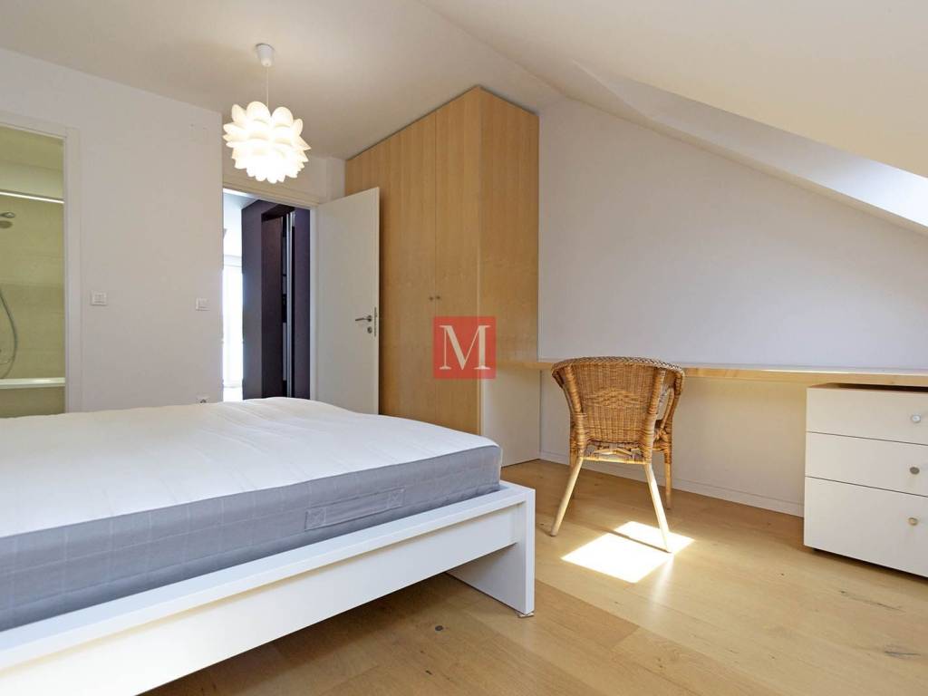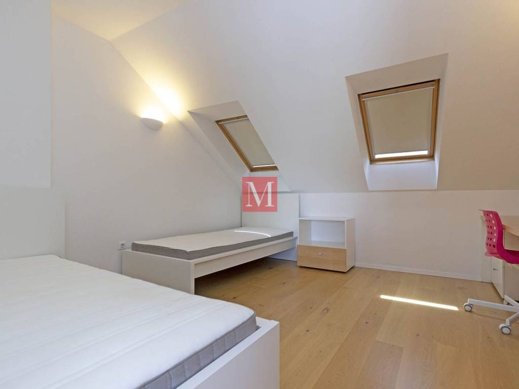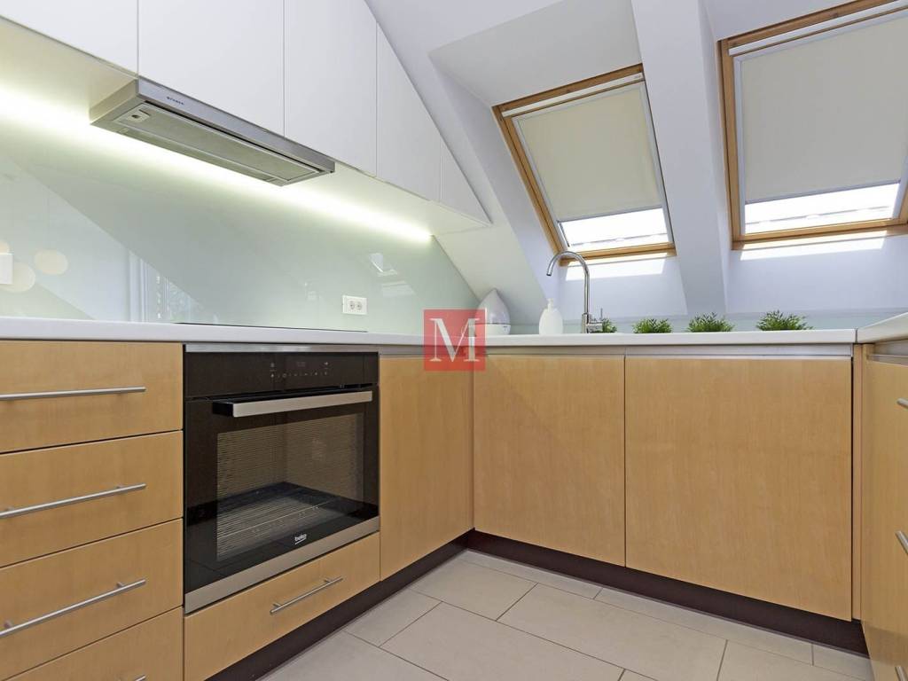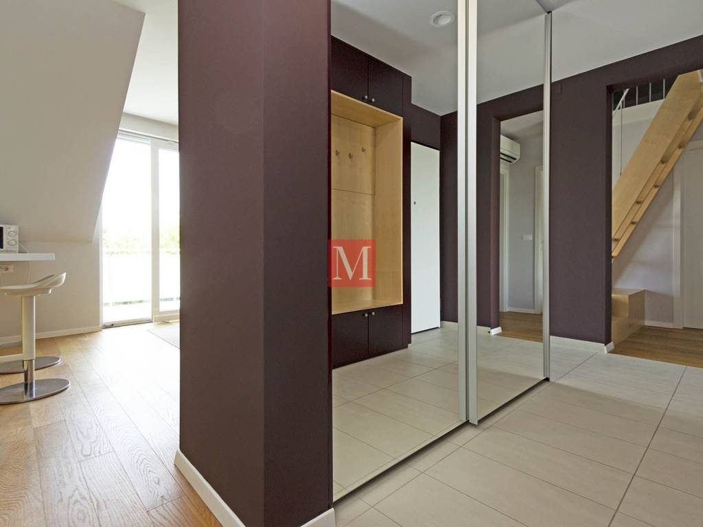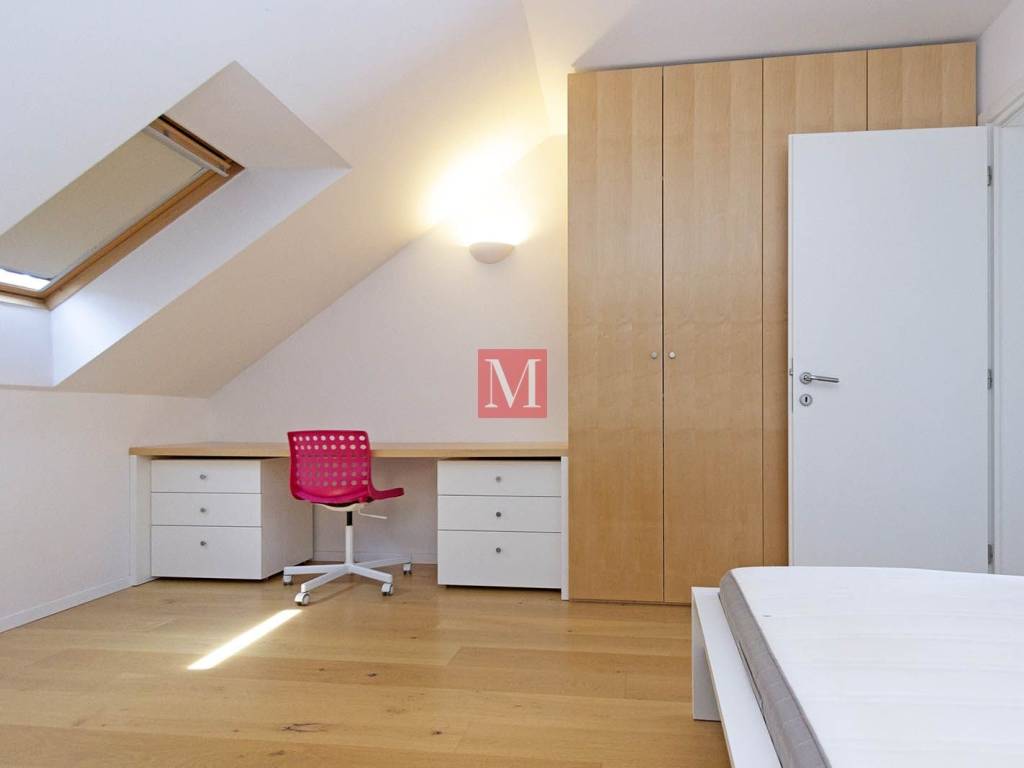 Lovely, modern, designer duplex apartment on Jarun, in a quiet street near Zagrebačka avenue. The apartment consists of a spacious living room with kitchen, dining room and exit to the terrace, two bedrooms, 2 bathrooms. On the upper floor is a large open space that can be used for various purposes. The apartment comes with 1 parking space in the yard and a storage (6m2) in the basement. Energy certificate: class B. Exclusively long-term lease with a mandatory deposit. Agency commission: 1 month rent + VAT.