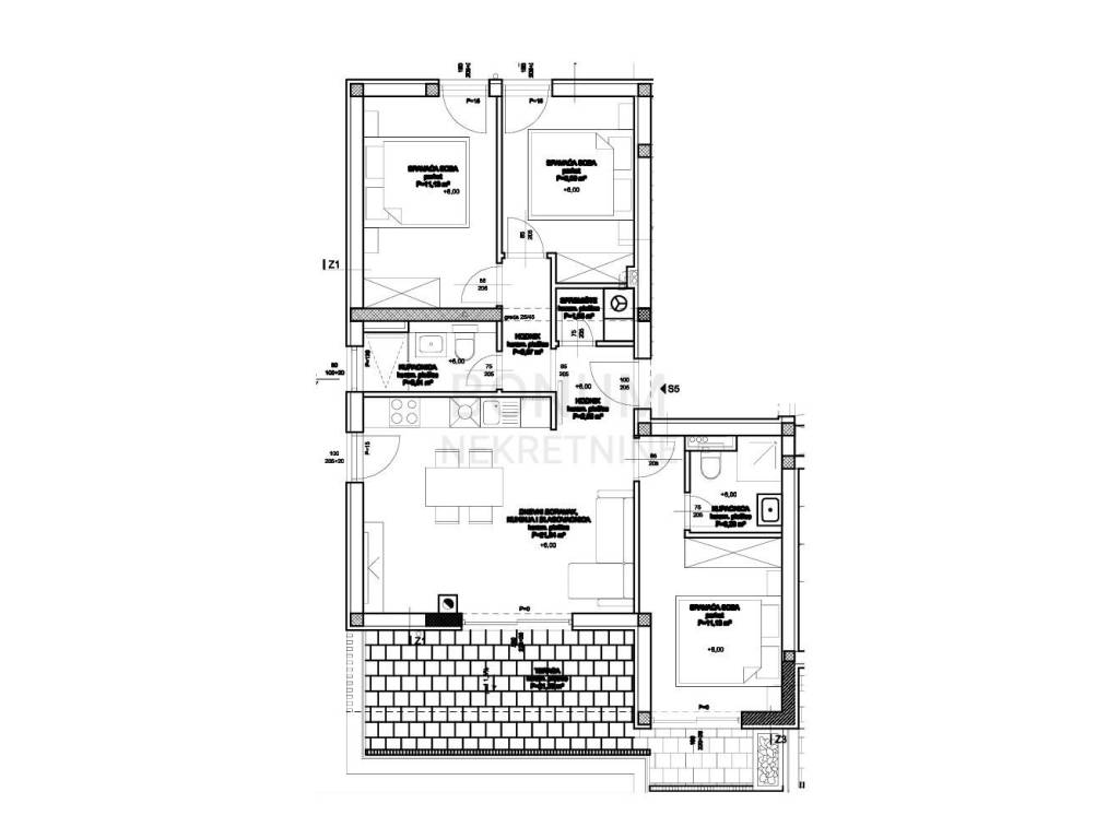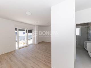 The apartment is located in a modern building with eight apartments spread over four floors. The facility is built with quality materials and equipment: thermal facade, security doors, electric roller shutters and mosquito nets, underfloor heating in the bathrooms, air conditioning in all rooms, quality sanitary ware and glass railings. Apartments on higher floors offer an additional advantage thanks to spacious terraces and panoramic views. The planned completion of the works is spring 2026.
