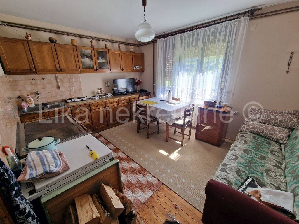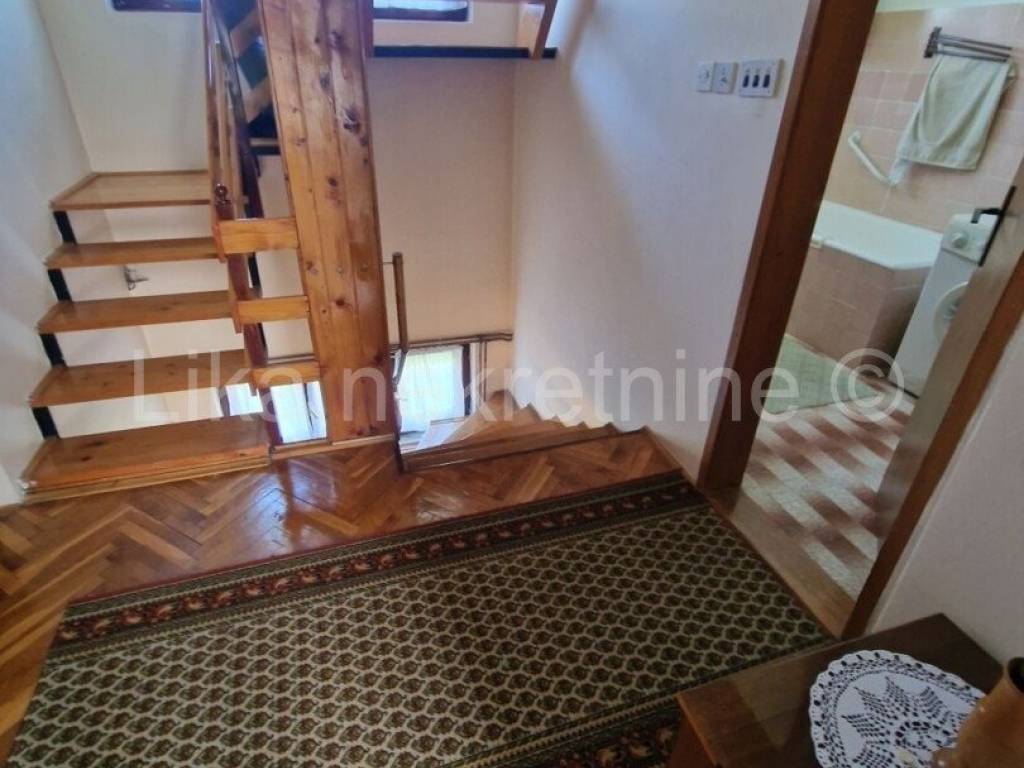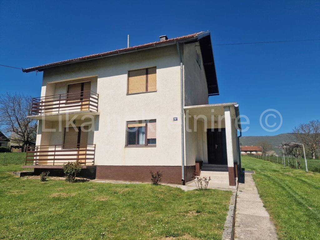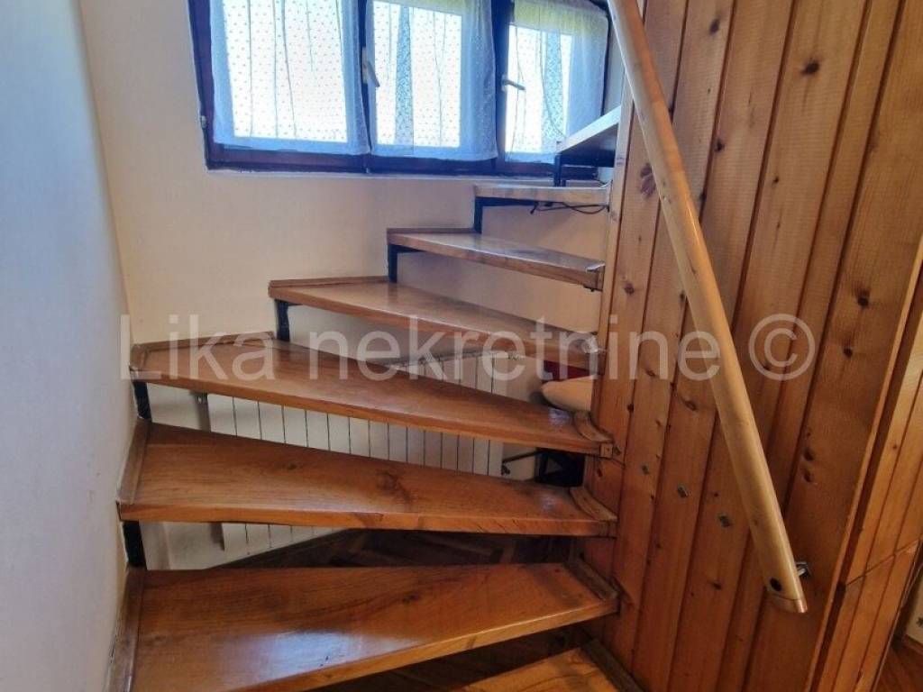 LIČKO LEŠĆE ( Otočac ) - Samostojeća obiteljska kuća 220 m2, prizemlje i kat, smještenoj u Ličkom Lešću, nedaleko Otočca. Kuća se sastoji od natkrivenog ulaza, hodnika, kuhinje, velike dnevne sobe, špajze i wc-a, na kat ove stepenice i nalaze se 3 spavaće sobe te kupatilo s wc-om. Kuća ima etažno centralno grijanje za kruta goriva - drva, kuhinjski štednjak na kojem se kuha i ujedno grije prostorije. Drvena stolarija s roletama, balkoni na obje etaže do ceste. Potkrovlje visoko s mogućnošću uređenja stana jer ima betonsku deku. Ova kuća pruža idealne uvjete za kvalitetan obiteljski život s velikom okućnicom od 1.478 m nudi dovoljno prostora za vrt, rekreaciju i opuštanje na svježem zraku, ima voćnjak, sa šljivama, kruška, jabuka i grožđem. Uz kuću je ljetna kuhinja u kojoj se boravi cijelo ljeto te ostava za drva i natkriveno parkirno mjesto za automobil. Lokacija je posebno pogodna za obitelji osnovna škola nalazi se svega 200 metara dalje, a dostupnost autobusnih linija osigurava jednostavnu svakodnevnu mobilnost. Spoj funkcionalnosti, prostora i netaknute prirode čini ovu nekretninu izvrsnom prigodom za sve koji žele pobjeći od gradske vreve i izgraditi dom ispunjen mirom i autentičnim životom blizu prirode.