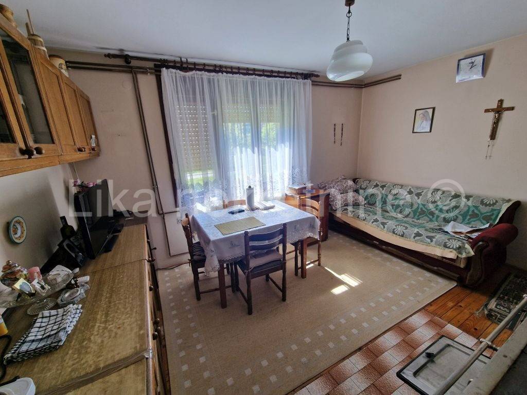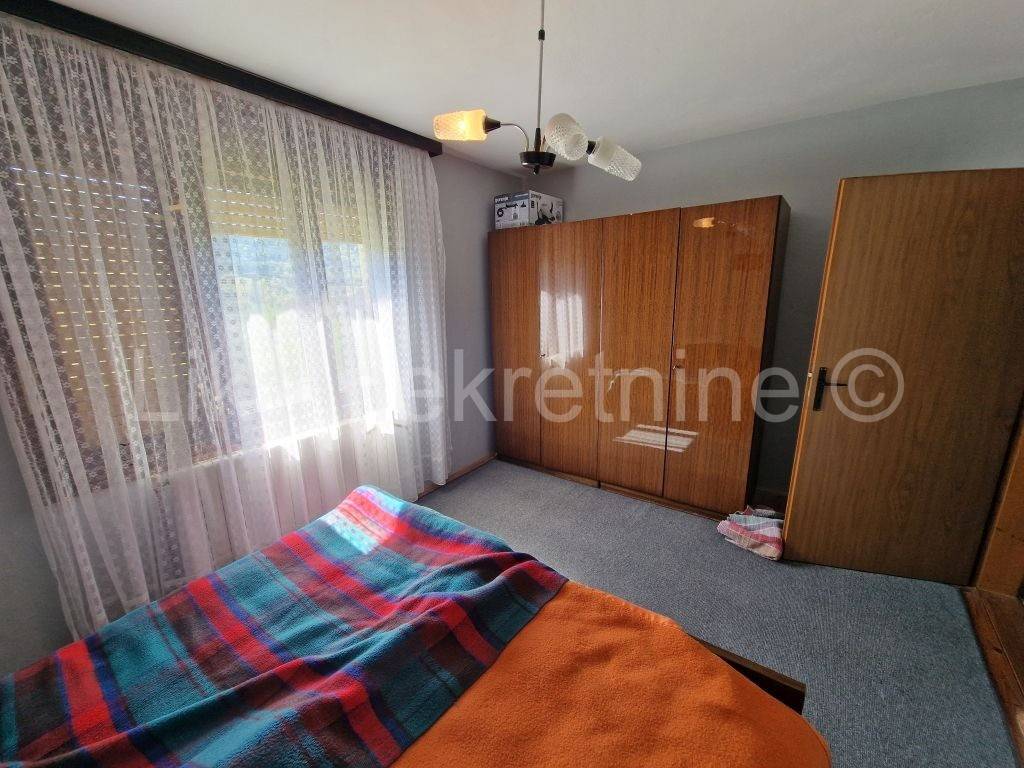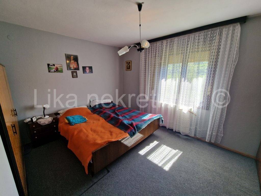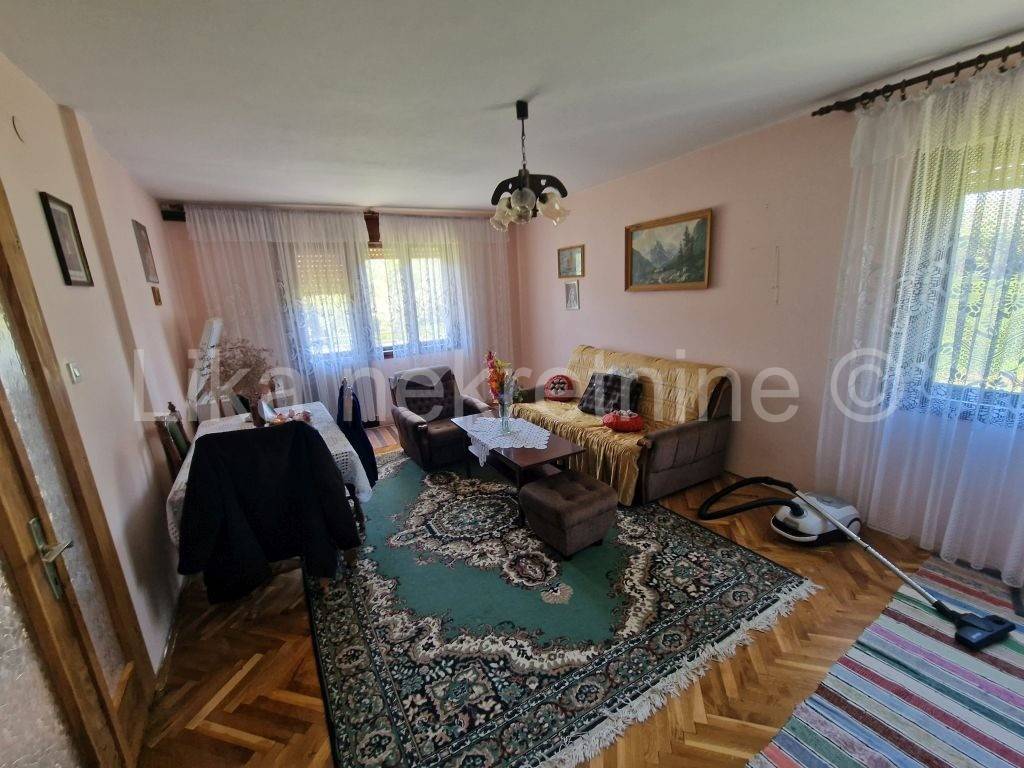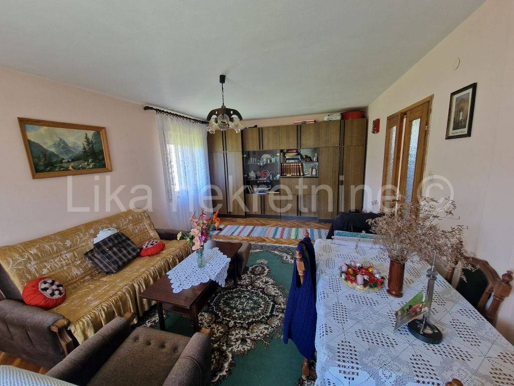 LIČKO LEŠĆE ( Otočac ) - Samostojeća obiteljska kuća 220 m2, prizemlje i kat, smještenoj u Ličkom Lešću, nedaleko Otočca. Kuća se sastoji od natkrivenog ulaza, hodnika, kuhinje, velike dnevne sobe, špajze i wc-a, na kat ove stepenice i nalaze se 3 spavaće sobe te kupatilo s wc-om. Kuća ima etažno centralno grijanje za kruta goriva - drva, kuhinjski štednjak na kojem se kuha i ujedno grije prostorije. Drvena stolarija s roletama, balkoni na obje etaže do ceste. Potkrovlje visoko s mogućnošću uređenja stana jer ima betonsku deku. Ova kuća pruža idealne uvjete za kvalitetan obiteljski život s velikom okućnicom od 1.478 m nudi dovoljno prostora za vrt, rekreaciju i opuštanje na svježem zraku, ima voćnjak, sa šljivama, kruška, jabuka i grožđem. Uz kuću je ljetna kuhinja u kojoj se boravi cijelo ljeto te ostava za drva i natkriveno parkirno mjesto za automobil. Lokacija je posebno pogodna za obitelji osnovna škola nalazi se svega 200 metara dalje, a dostupnost autobusnih linija osigurava jednostavnu svakodnevnu mobilnost. Spoj funkcionalnosti, prostora i netaknute prirode čini ovu nekretninu izvrsnom prigodom za sve koji žele pobjeći od gradske vreve i izgraditi dom ispunjen mirom i autentičnim životom blizu prirode.