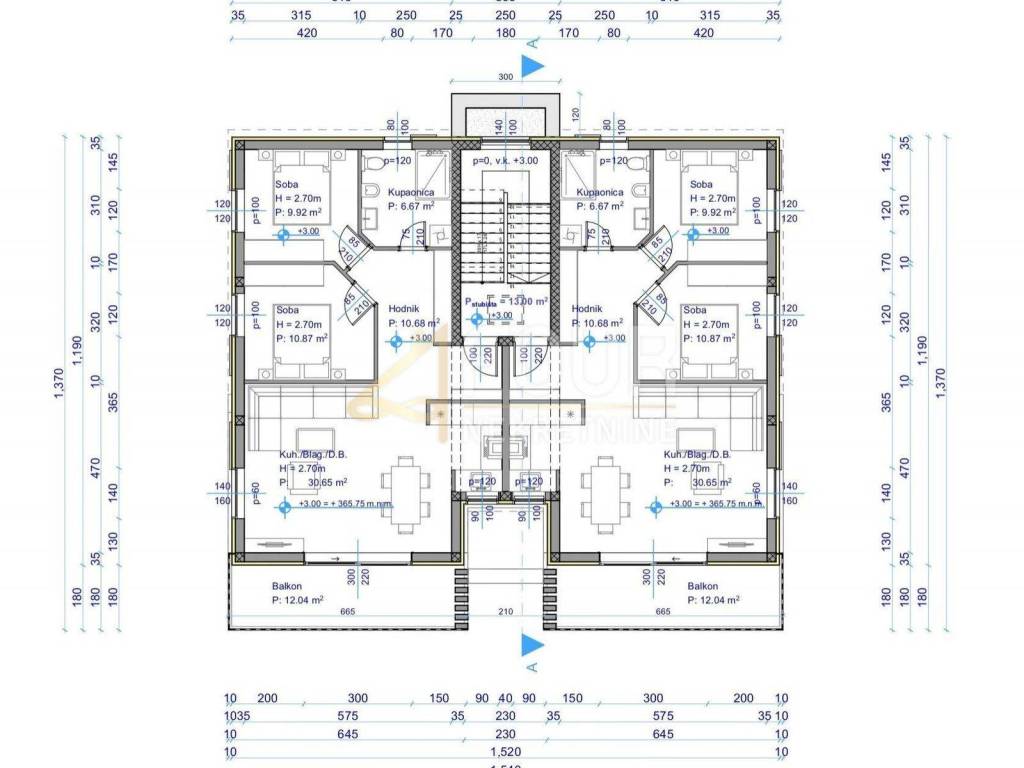 It consists of two bedrooms, a living room, a kitchen with a dining room, a bathroom, a hallway and a balcony with a view of Učka and Kastav.
