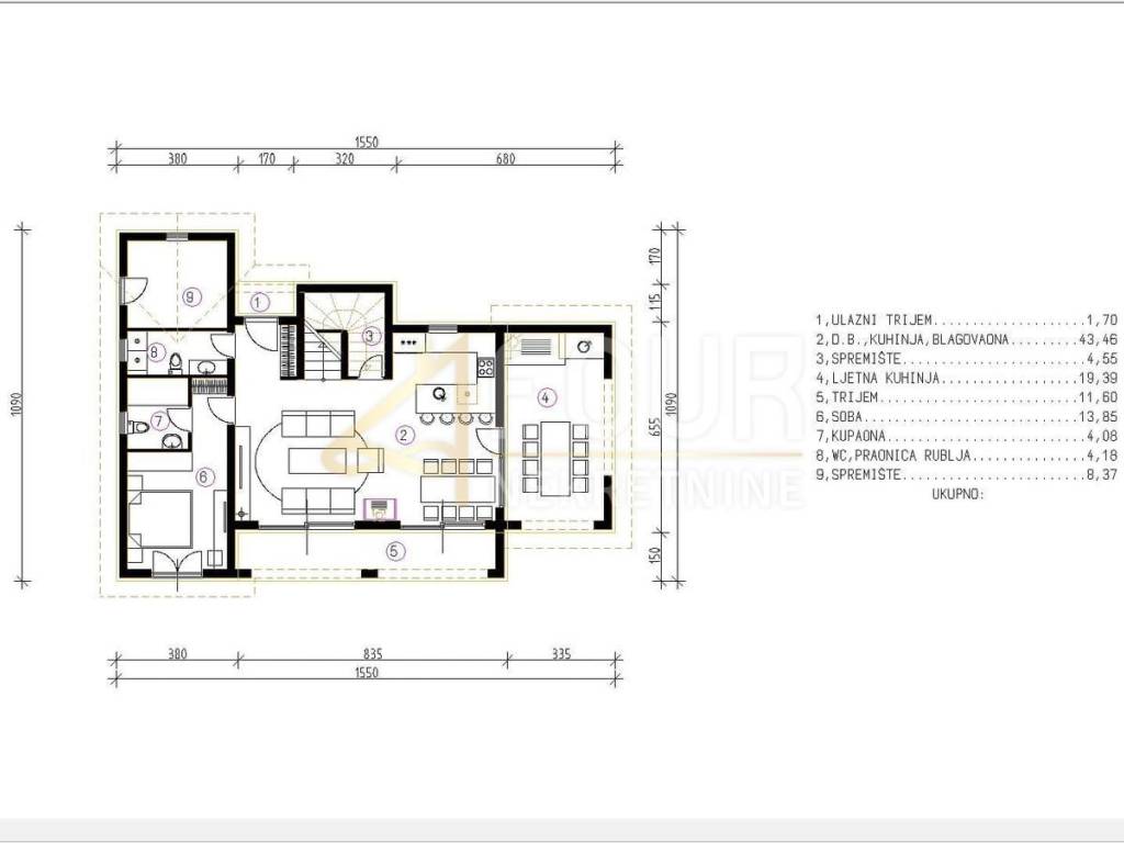 Built on a plot of 547 m2, it is surrounded by a spacious garden of 400 m2, which includes a swimming pool, garden, outdoor grill, summer kitchen and outdoor shower, which provides an ideal space for enjoying the outdoors.