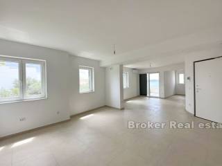A penthouse for sale in a new building, located just a few kilometers from the center of Zadar. It is located in a quiet cul-de-sac, which gives the property privacy and peace, while at the same time it is very well connected to the main road. The apartment is located in a smaller building with a total of four apartments and is located in the second row to the sea, i.e. 20 meters from the beach, which can be accessed directly from the building. The apartment extends over two floors and has 110 m2 of usable area and another 80 m2 of spacious terrace. On the lower floor of the apartment there is a kitchen, dining room, living room and shared bathroom. From the living room there is an exit to the balcony with a view of the sea. An internal staircase leads to the upper floor where there are three bedrooms, one of which is the master with its own bathroom. Also, the other two rooms have a shared bathroom upstairs. The two rooms on the first floor are surrounded by sliding glass walls that open onto a spacious terrace where there are connections for the jacuzzi. The apartment is equipped with air conditioners for cooling and heating, while it also has panels on the roof of the building. The apartment also has two outdoor parking spaces. The nearest supermarkets are a few hundred meters away, the center of Zadar is only 10 kilometers from the property, while the airport is 20 kilometers away.