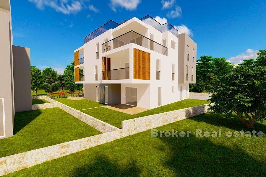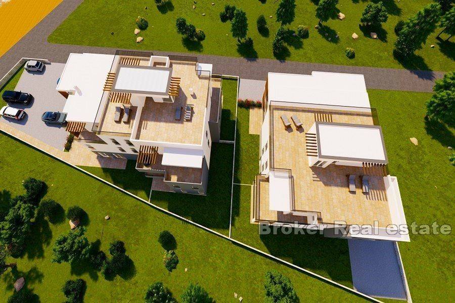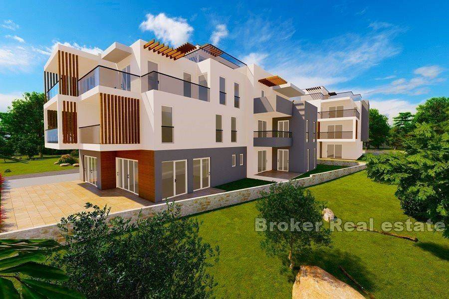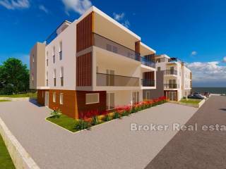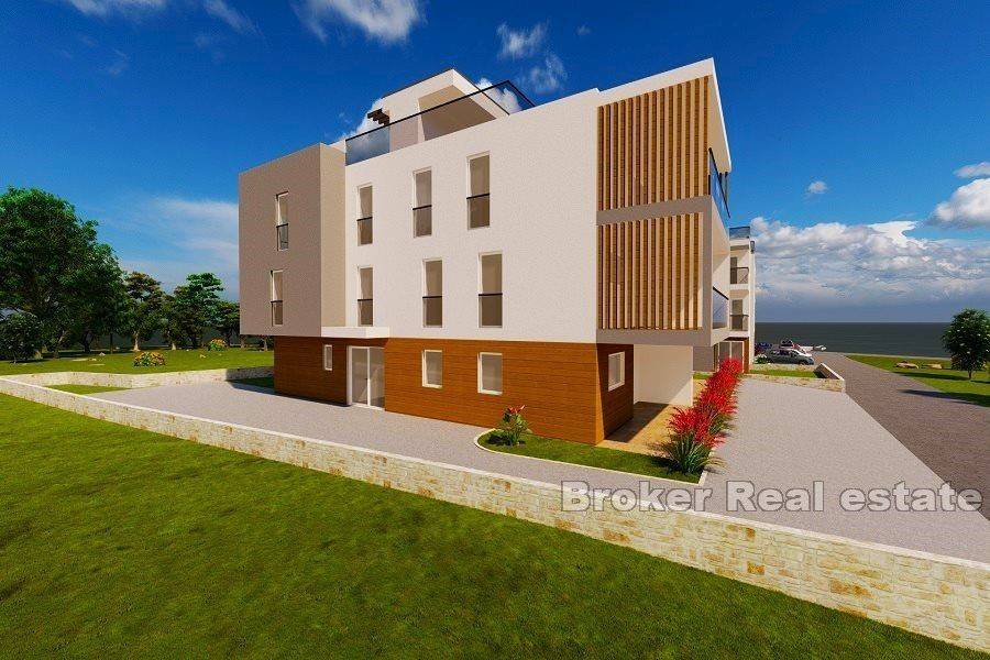 Apartments by the sea, attractive location. Modern new building with eight residential units, 50 m from the sea and the beach. The entire project is under construction, it will be a combination of quality, luxury and a great location, occupancy is scheduled for the summer of 2023. A very quiet location, ideal for living throughout the year and for family vacations. In a quiet place, yet close to all facilities: shops, restaurants, beach, pharmacy, cafes… The town of Šibenik is 10 km away, Krka National Park 21 km, Vransko Lake Nature Park 27 km, airport 50 km. Apartments for sale: GROUND FLOOR: Apartment S1, ground floor – net area 81.90 m2 The apartment consists of an entrance, hallway, bedroom 1, bedroom 2, bathroom, kitchen with dining room, living room and terrace of 15.11 m2. The apartment has a garden of 18.35 m2 and one parking space. Price: €305,000.00 – SOLD! Apartment S2, ground floor – net area 107.93 m2 The apartment consists of an entrance hall, bedroom 1, bedroom 2, bathroom, toilet, kitchen with dining room, living room and a terrace of 12.26 m2. The apartment has a garden of 60.71 m2 and one parking space. Price: €399,341.00 S3 apartment, ground floor – net area 99.37 m2 The apartment consists of an entrance, hallway, bathroom, bedroom 1, bedroom 2, toilet, kitchen with dining room, living room and a terrace of 22.58 m2. The apartment has a garden of 105.70m2 and one parking space. Price: €367,699.00 I.FLOOR: S4 apartment, 1st floor – net area 79.28m2. The apartment consists of an entrance, hallway, bedroom 1, bedroom 2, bathroom, kitchen with dining room, living room and terrace of 18.57 m2. The apartment has one parking space. PRICE: €303,264.00 – SOLD! S5 apartment, 1st floor – net area 83.34 m2. The apartment consists of an entrance, hallway, bathroom, bedroom 1, bedroom 2, toilet, kitchen with dining room, living room and terrace of 14.18m2. The apartment has one parking space. Price: €333,892.00 – SOLD! S6 apartment, 1st floor – net area 89.74m2. The apartment consists of an entrance, hallway, bathroom, bedroom 1, bedroom 2, toilet, kitchen with dining room, living room and terrace of 11.70 m2. The apartment also has one parking space. Price: €343,012.00 – SOLD! II.FLOOR: S7 Apartment, 2nd floor, Penthouse – net area 192.68 m2. The apartment consists of an entrance, hallway, staircase, bedroom 1, bedroom 2, bedroom 3 with bathroom, bathroom, toilet, kitchen with dining room, living room, terrace of 31.98m2 and roof terrace of 52.58m2. The apartment also has one parking space. Price: €751,452.00. S8 Apartment, 2nd floor, Penthouse – net area 170.34 m2. The apartment consists of entrance, hallway, staircase, bedroom 1, bedroom 2, bedroom 3 with bathroom, bathroom, toilet, kitchen with dining room, living room, terrace of 18.35m2 and roof terrace of 77.33m2. The apartment also has one parking space. Price: €680,000.00.