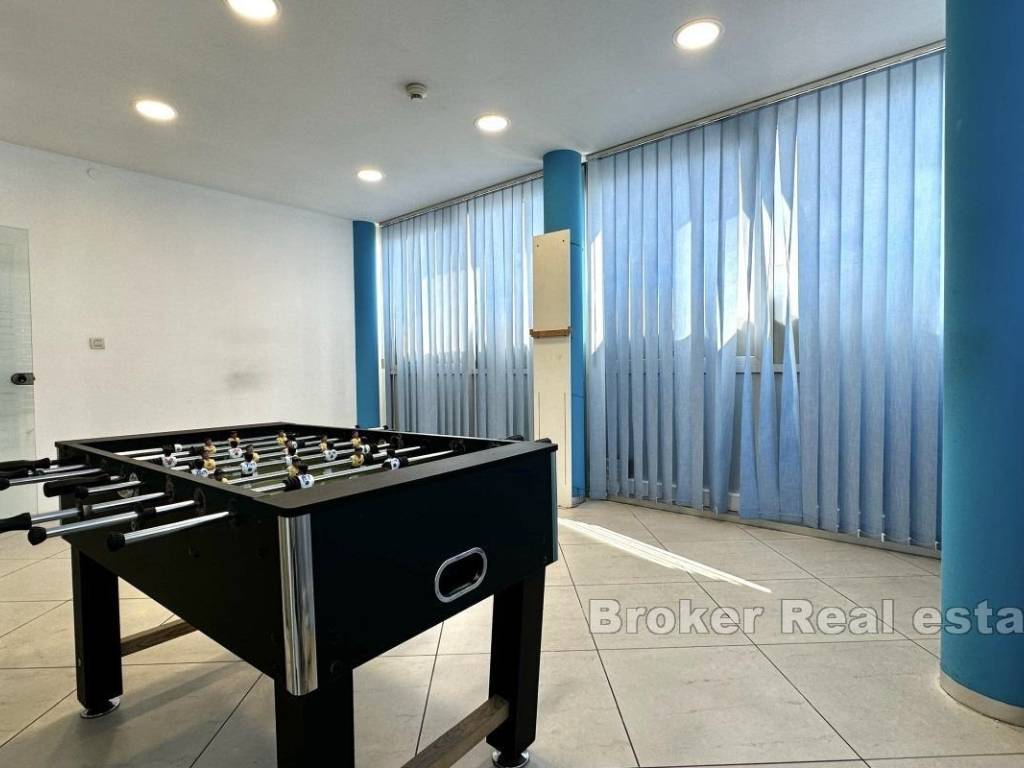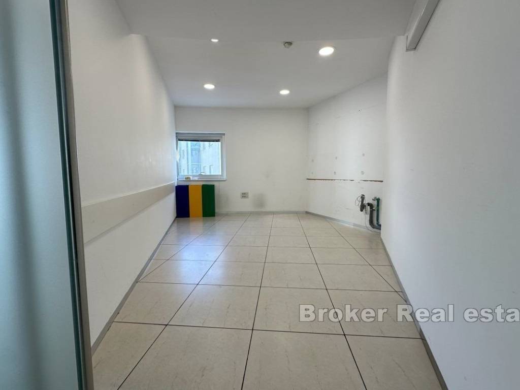 Iznajmljuje se prostran i uređen uredski prostor na odličnoj lokaciji. Površine 290 m², smješten na zadnjem katu zgrade, nudi privatnost i mir potreban za ugodno i produktivno radno okruženje. Sastoji se od jedanaest prostorija, uključujući konferencijsku dvoranu, sedam ureda, čajnu kuhinju i dva sanitarna čvora. Povlaštena lokacija omogućuje brz pristup svim važnim sadržajima, poput trgovina, restorana i bolnice. U blizini se nalaze javna parkirališta, s opcijama besplatnog i naplatnog parkiranja, što osigurava dodatnu pogodnost zaposlenicima i klijentima. Ovaj prostor idealan je za uredske djelatnosti te pruža savršene uvjete za uspješno poslovanje.