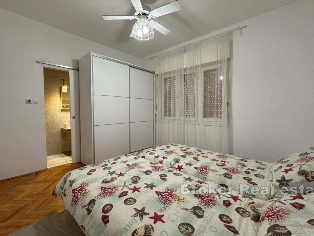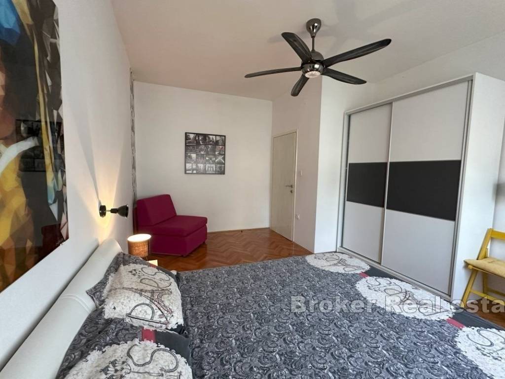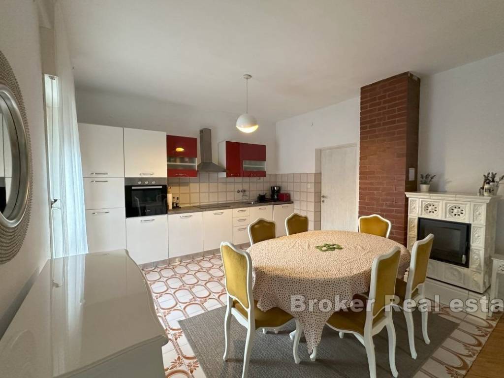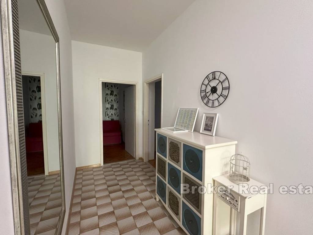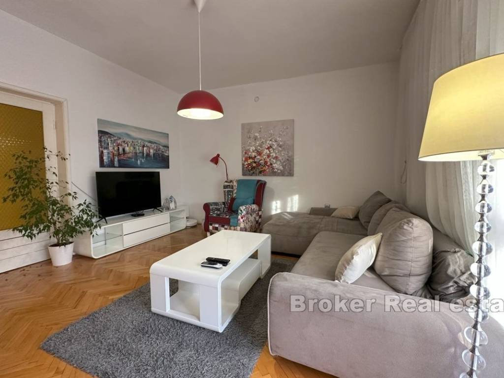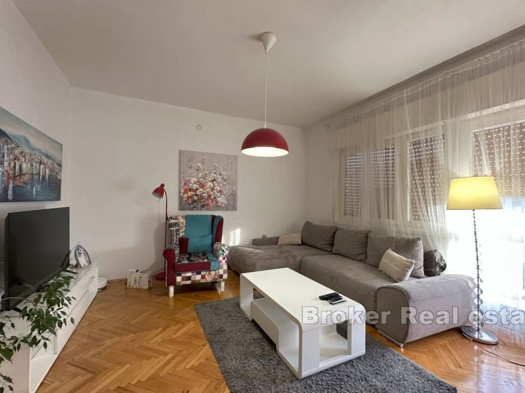 A comfortable three-bedroom apartment for rent, located on the first floor of a private house with a separate entrance and private parking for two vehicles. The apartment has a total living area of 107 m² and includes a spacious 15 m² terrace, ideal for enjoying fresh air. The terrace is accessible from the living room and one of the bedrooms, and there is an additional veranda at the main entrance. The interior features three bedrooms, one of which has its own en-suite bathroom, an additional bathroom, and a small storage room. The spacious living room is connected to the dining area and a fully equipped kitchen, providing a comfortable space for family gatherings and relaxation. Located in a convenient area close to all necessary amenities, the apartment offers peace and privacy, away from the hustle and bustle of the city. *Given the dynamics of the rental market, this ad is for informational purposes only and does not necessarily indicate that the apartment is currently available for rent. For the latest information, please contact us.