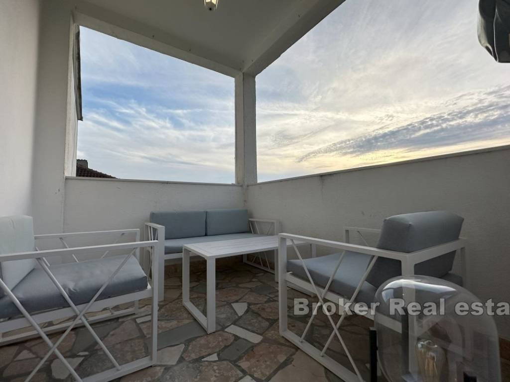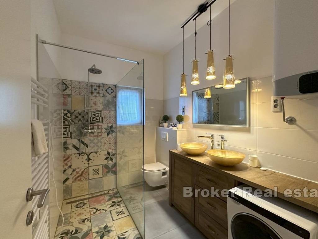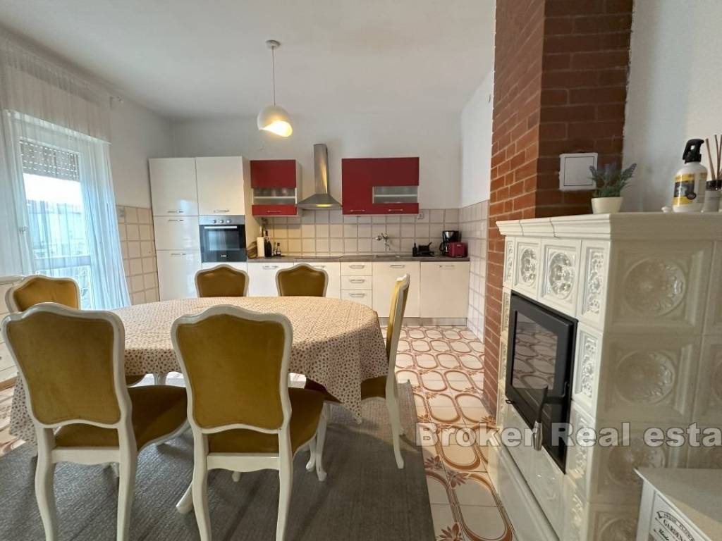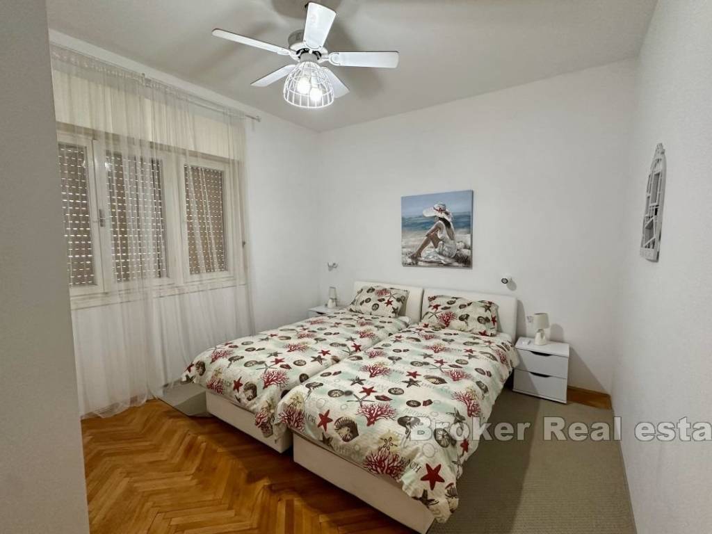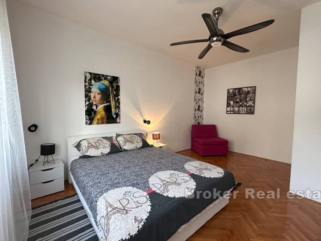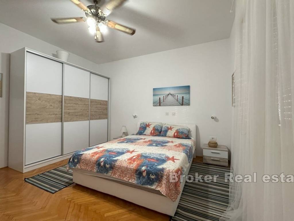 A comfortable three-bedroom apartment for rent, located on the first floor of a private house with a separate entrance and private parking for two vehicles. The apartment has a total living area of 107 m² and includes a spacious 15 m² terrace, ideal for enjoying fresh air. The terrace is accessible from the living room and one of the bedrooms, and there is an additional veranda at the main entrance. The interior features three bedrooms, one of which has its own en-suite bathroom, an additional bathroom, and a small storage room. The spacious living room is connected to the dining area and a fully equipped kitchen, providing a comfortable space for family gatherings and relaxation. Located in a convenient area close to all necessary amenities, the apartment offers peace and privacy, away from the hustle and bustle of the city. *Given the dynamics of the rental market, this ad is for informational purposes only and does not necessarily indicate that the apartment is currently available for rent. For the latest information, please contact us.