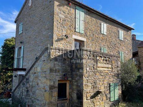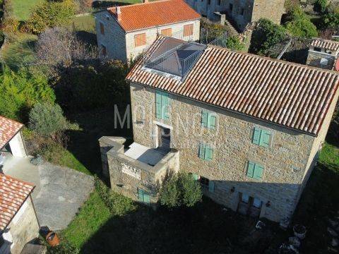 In a peaceful Istrian village, just a few kilometers from the charming town of Momjan, lies this beautifully renovated traditional Istrian stone house – a true oasis of peace and authenticity. It sits atop a hill, offering a breathtaking panoramic view of the surrounding hills, lush greenery, and the Adriatic Sea.