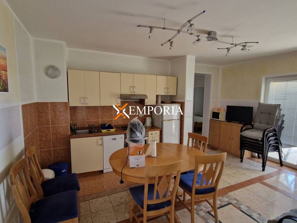 On the island of Vir, just 120 m from the sea and 1 km from the town center, a furnished apartment located on the first floor of the building is for sale. With a net surface area of 65,91 m², the apartment offers a functional layout and a partial sea view, making it suitable for year-round living or as a tourist investment.The apartment consists of a kitchen with dining and living area, anteroom, two bedrooms, a bathroom, and a covered terrace that provides pleasant outdoor space. The property also includes one outdoor parking space, which will be secured as unregistered ownership.