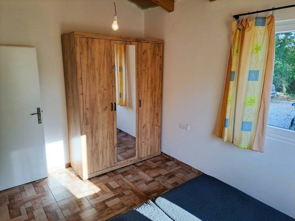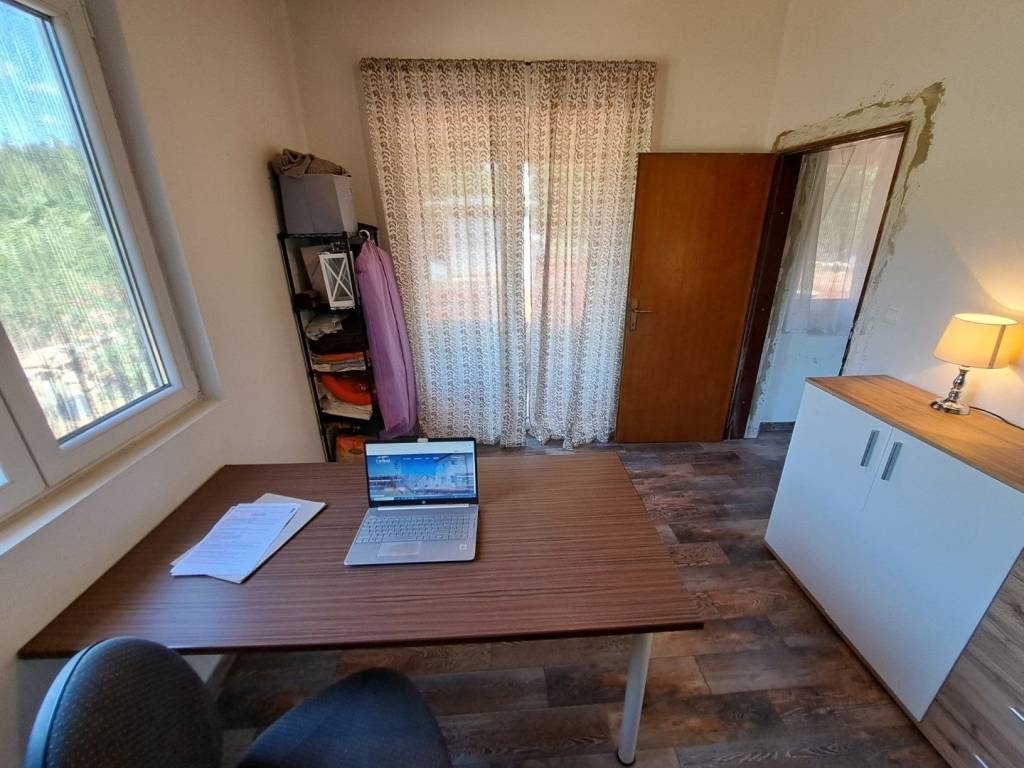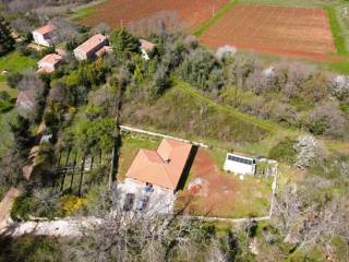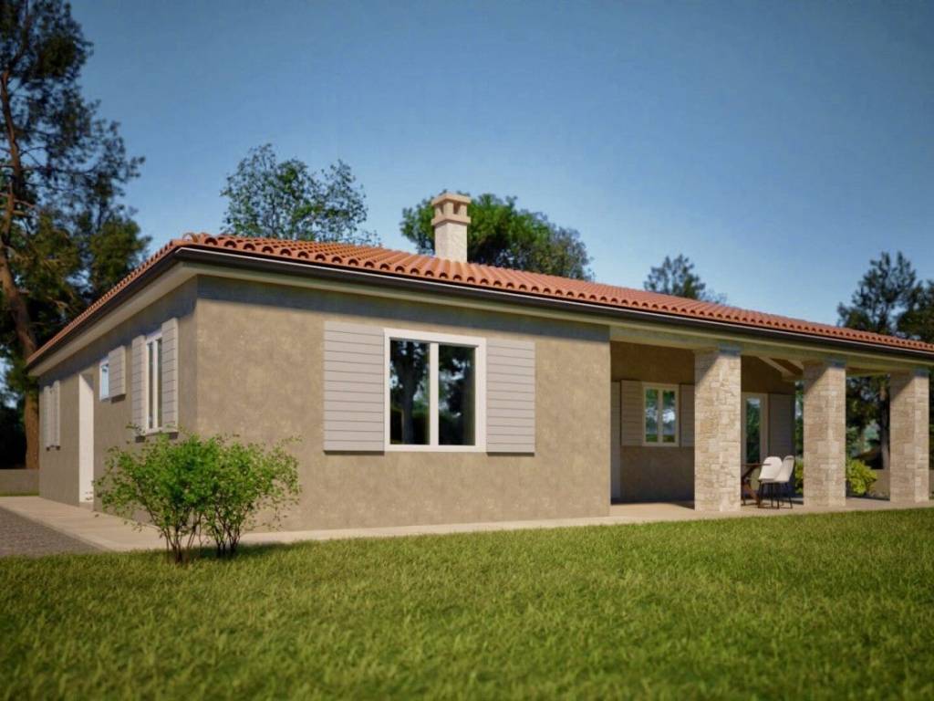 A single-storey house is for sale in a very quiet location near Poreč, approximately 10 km from the sea and the city. The house has no direct neighbors, there are 4 other private holiday homes in the village, and in addition, the house is surrounded by nature, vineyards and olive groves. It consists of an entrance hall, kitchen with dining area, separate living room, two bedrooms, one study and two bathrooms, one larger and one smaller. The study is entered through the living room, and access to the covered terrace is available from the kitchen, living room and study. In addition, one bedroom has a balcony door for access to the garden behind the house. For heating, there is a large wood-burning stove in the living room and air conditioning for heating and cooling. On the spacious garden there is an 18 m2 garden house on which a 5 kW solar system is installed. The garden is mostly fenced, part of the fence is a dry stone wall. The garden is planted with various types of Mediterranean plants (sage, rosemary, lavender, figs, etc.). The house needs to be completed, but it is habitable with active water and electricity connections and has a septic tank. The papers are in order with a valid building permit. The house offers maximum privacy, is not visible from the road and is located on the edge of a construction area next to the forest.