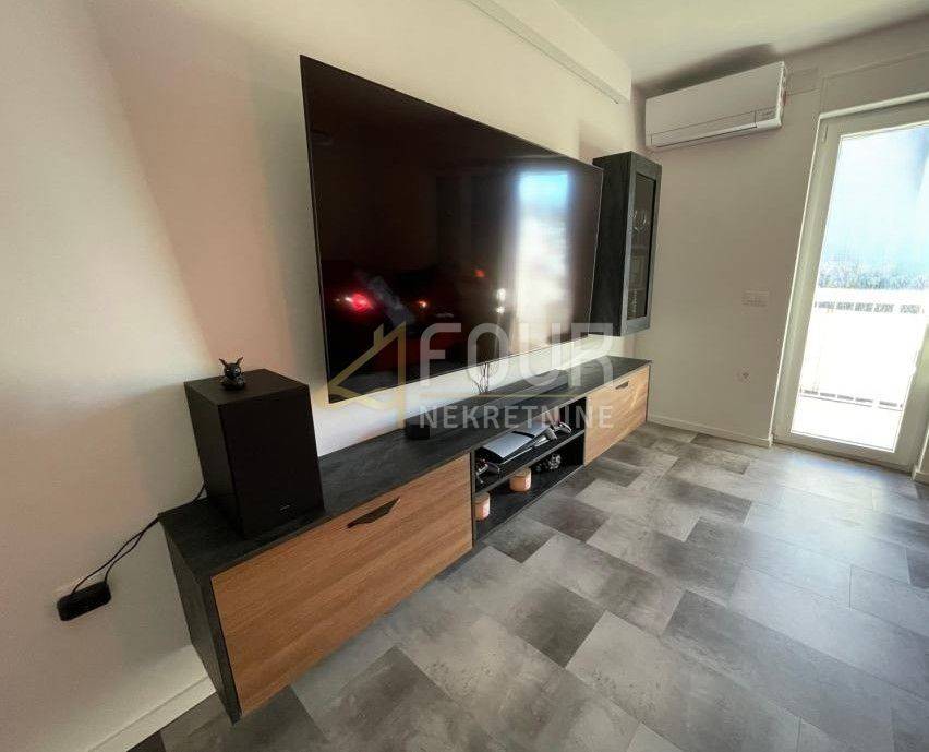 In Gornja Vežica, in a fully renovated residential building with a new thermal facade, a modernly furnished apartment of 50.62 m² with a balcony and partial sea view is for sale. It was completely renovated in 2025, including plumbing, electricity, bathroom, and high-quality materials such as ceramics, PVC joinery, and air conditioning. It is adapted to a modern lifestyle with an open space where the kitchen and living room are combined, while heating is provided by air conditioning. The furniture is custom-made, and the apartment includes a wood storage room. The building has video surveillance at the entrance and free public parking.