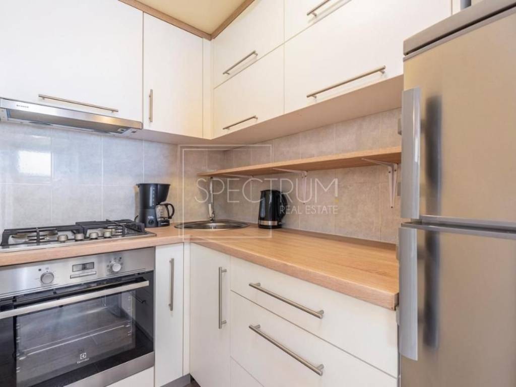 The apartment is located on the 3rd floor of a residential building. The apartment has an area of ​​30 m2. The apartment consists of one large shared living room and bedroom and a bathroom. The apartment has a sea view. The heating is regulated by air conditioning. The apartment is sold furnished. Public parking is available for use in the immediate vicinity of the apartment.
