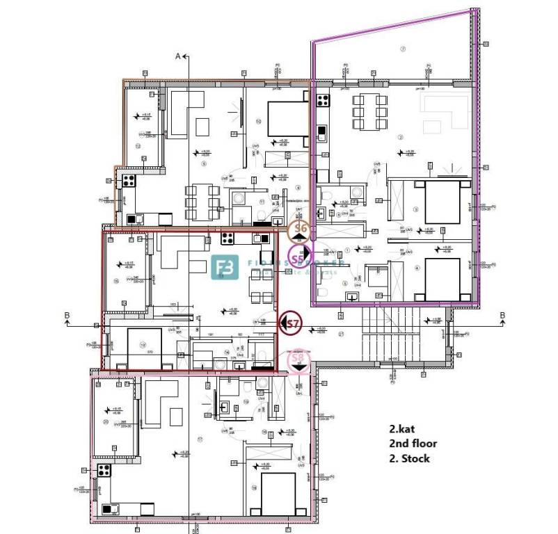 The property is located in a quiet location, 1500 m from the city center and 1800 m from the beach. The construction of a small residential building with a total of 8 apartments (4 two-storey apartments and 4 apartments on the 2nd floor of the building) is underway. The modern-looking residential building will consist of three floors: ground floor + 1st floor + 2nd floor. The building is being built with quality materials and will be equipped according to the latest construction standards: polystyrene facade, anthracite-colored PVC joinery, ALU lift-and-slide glass walls, burglar-proof and fire-resistant entrance doors, roller shutters with electric lifts, mosquito nets, MDF interior doors, high-quality ceramic floor coverings, laminate flooring in the bedrooms, modern bathroom fixtures, electric underfloor heating in the living room and bathroom, glass railings on the terraces, air conditioning in the bedrooms and living room. Planned completion date and move-in date: 11./ 2025.