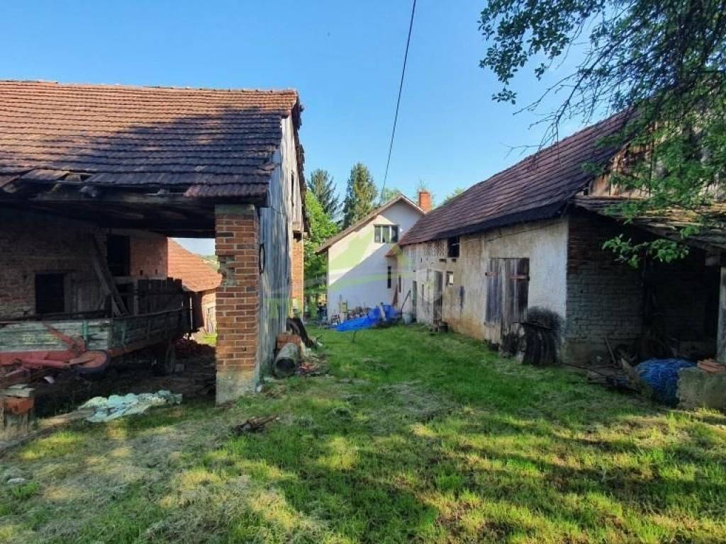 Kuća katnica tlocrtne površine 100 m2 sa gospodarskim zgradama na zemljištu ukupne površine 11.437 m2; odlična lokacija uz samu prometnicu.Kuća se sastoji od prizemlja, kata te potkrovlja.Priključak struje, vode i plina; drvena stolarija.Grijanje putem peči na kruta goriva.Kući je potrebna kompletna adaptacija.Uz kuću te gospodarske zgrade se prodaje i veća površina zemljišta (cca 5.000 m2 je građevinsko područje) u jednom komadu.Imanje je pogodno za otvaranje OPG-a.