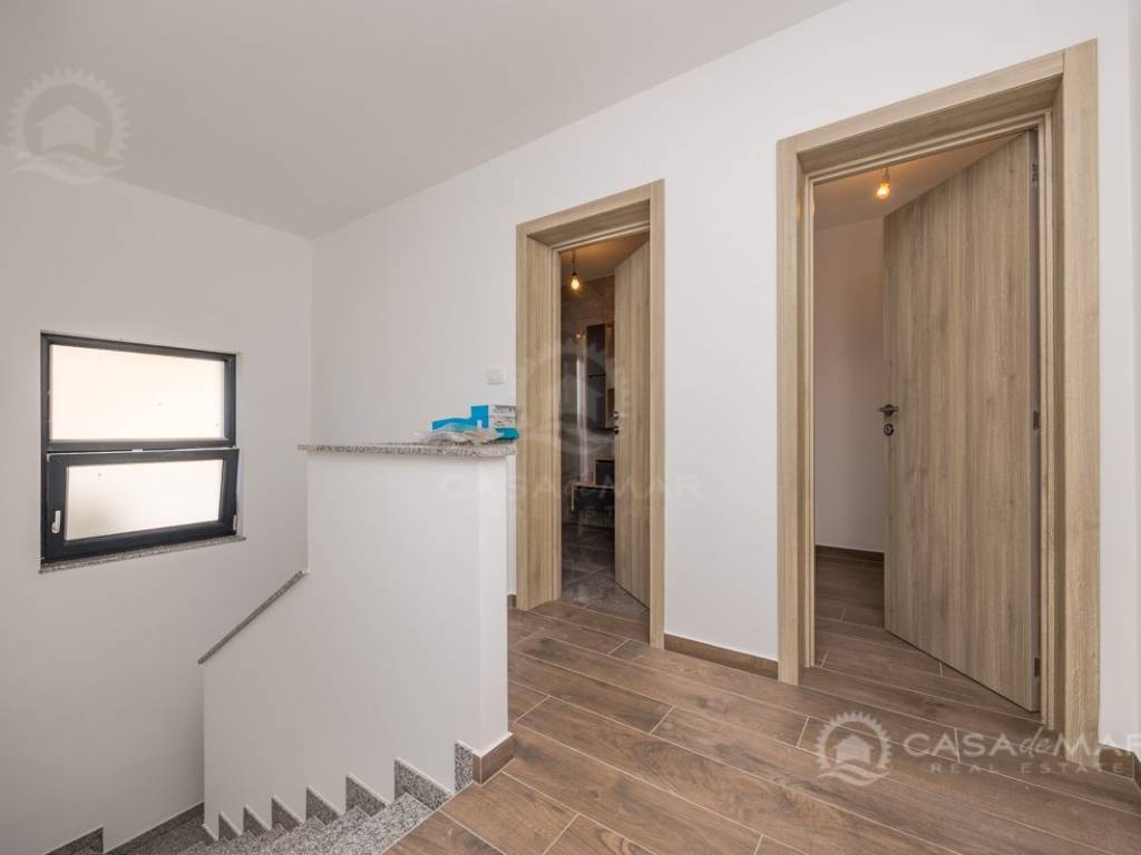 For sale is a modern duplex apartment located on the ground and first floor of a high-quality new residential building in Crikvenica, just 400 meters from the sea. This property offers privacy, comfort, and spectacular sea views. In addition to enjoying sea views already from the ground floor and the landscaped garden, the upper floor boasts a truly unique panoramic sea view that is simply priceless.